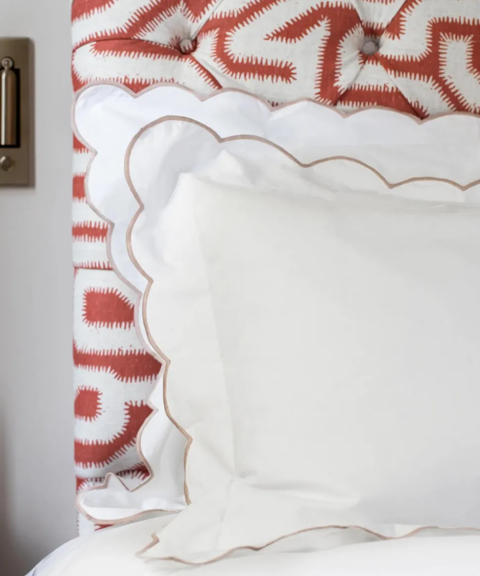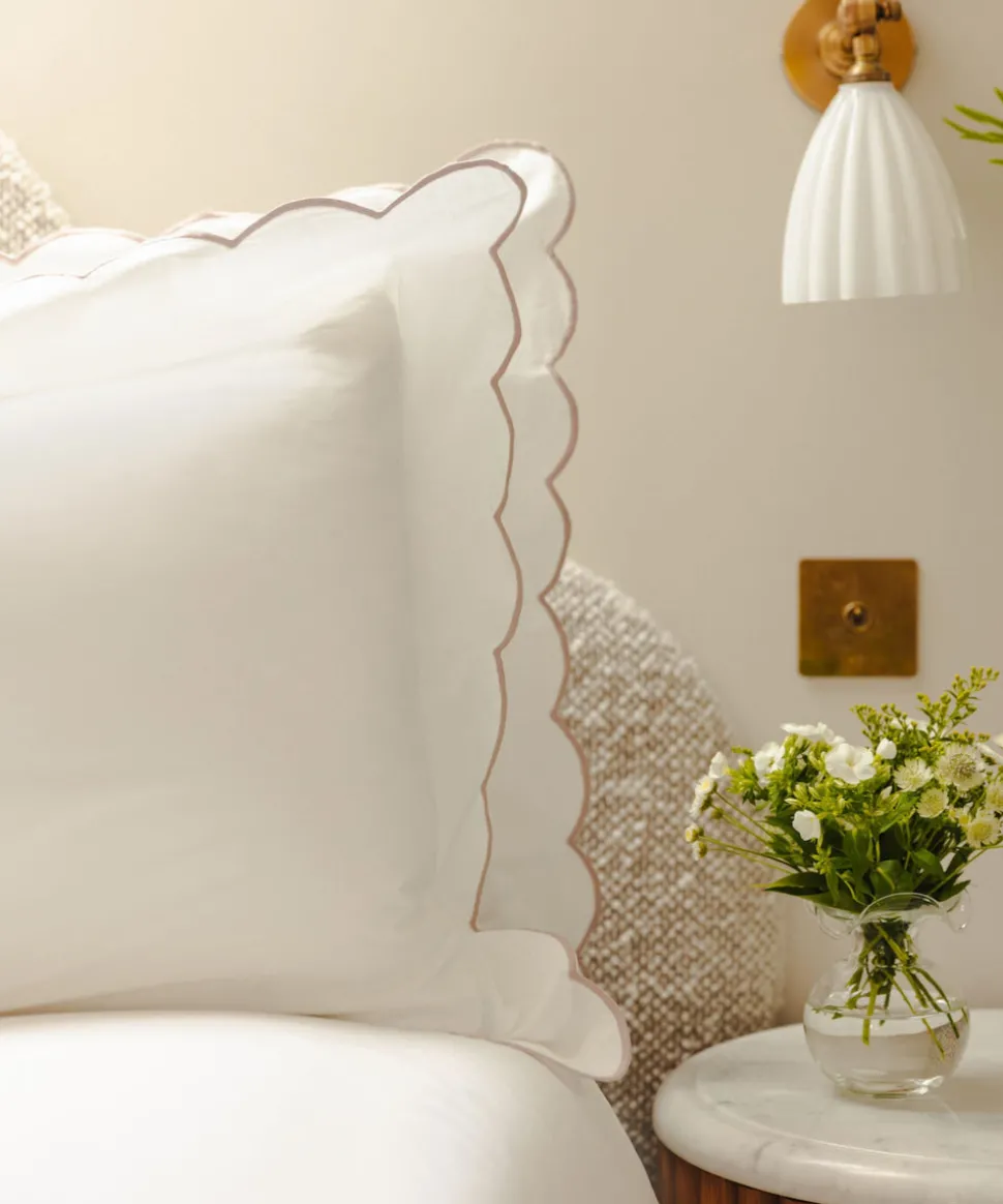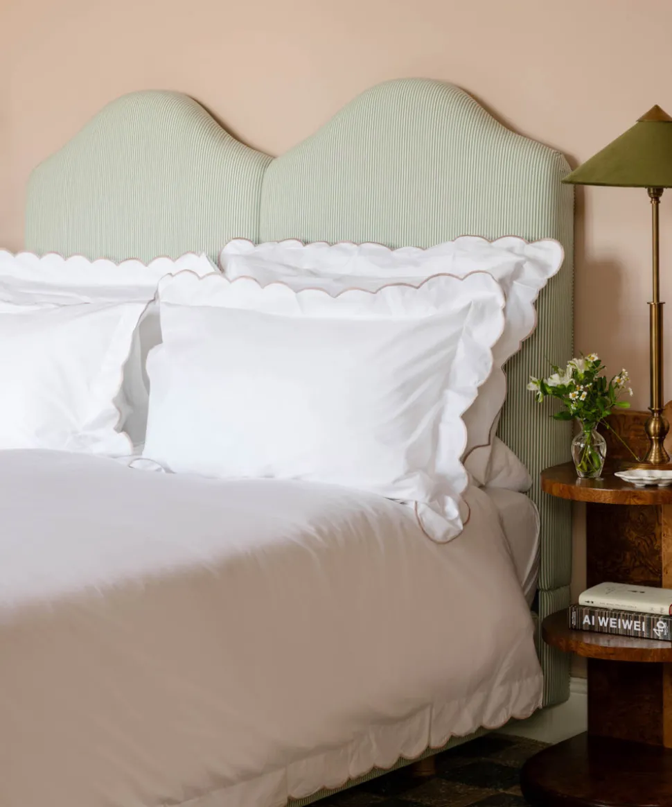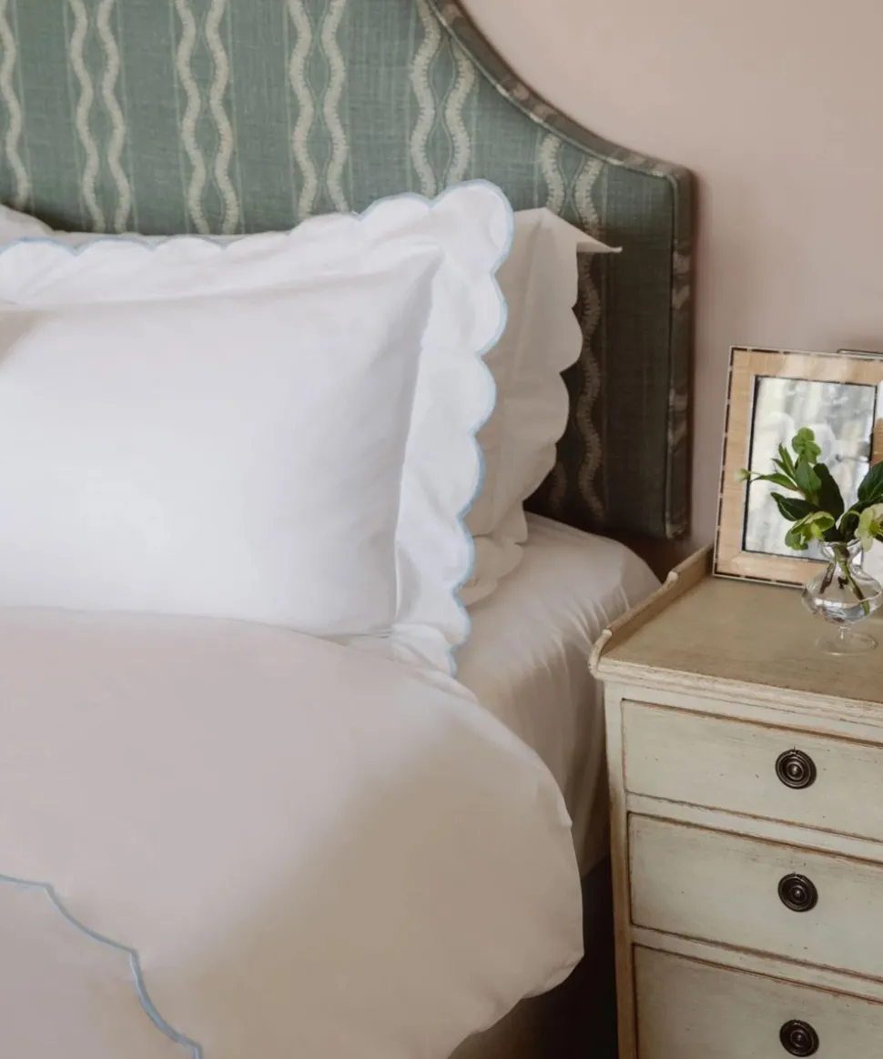 A belief in buying less, and better, leads Rebecca Udall to the finest materials and most capable makers for her luxe linens and homewares. Focusing on provenance, longevity and timelessness, these are investment pieces that can elevate any table, room, or home. The Annabelle Scalloped Bed Linen range has a decorative embroidered scallop border, simply elevating bedroom decor to offer a soft, cozy, and design-forward touch. This collection is made in Portugal, where there is a longstanding history for weaving fine quality textiles.