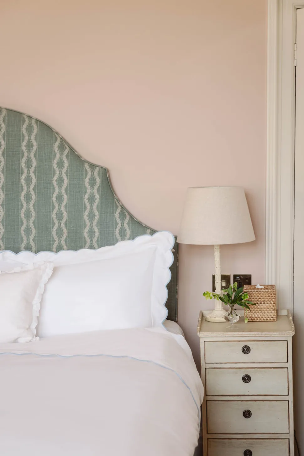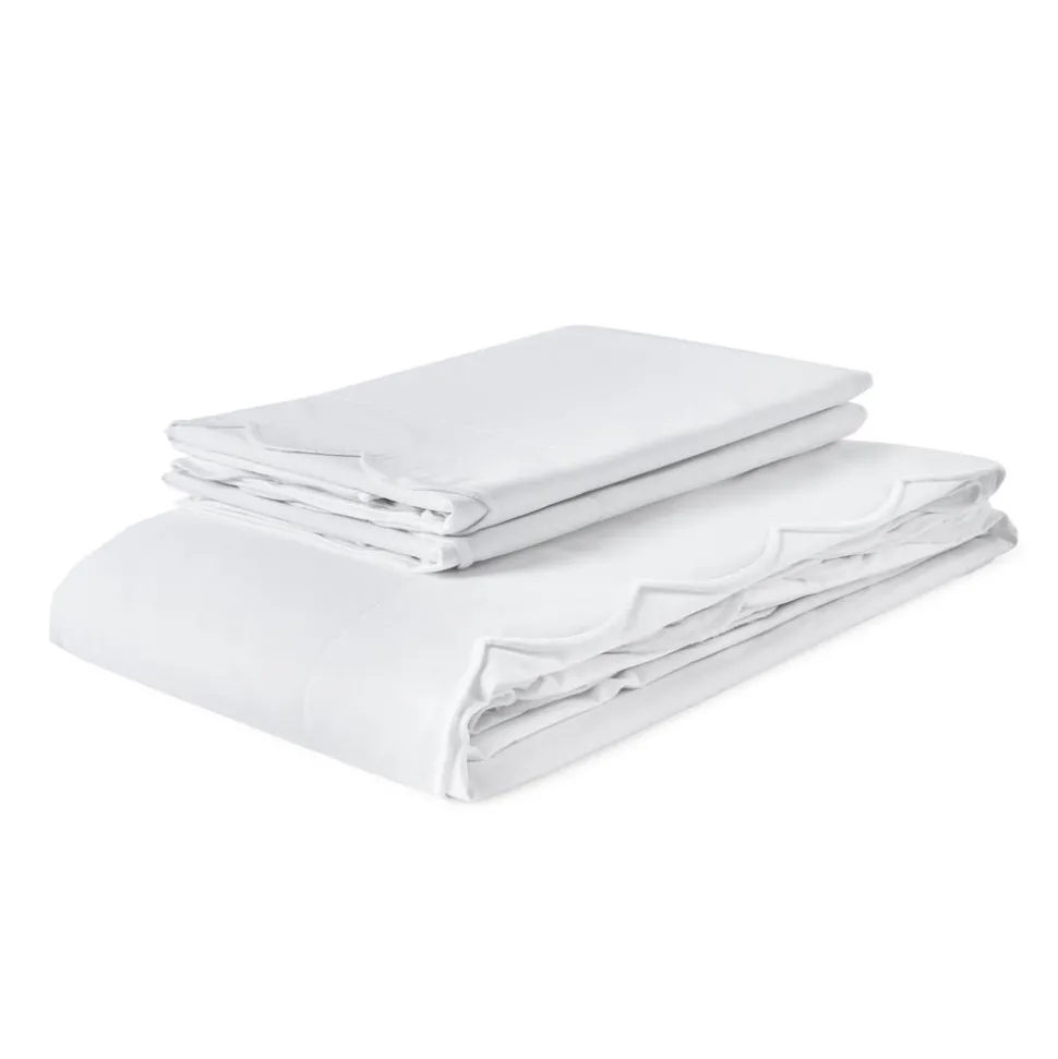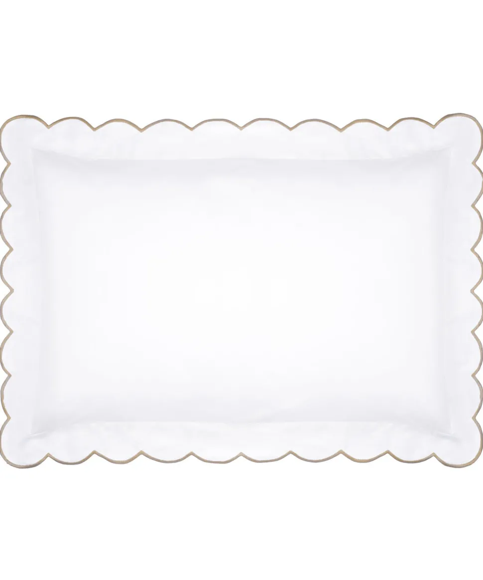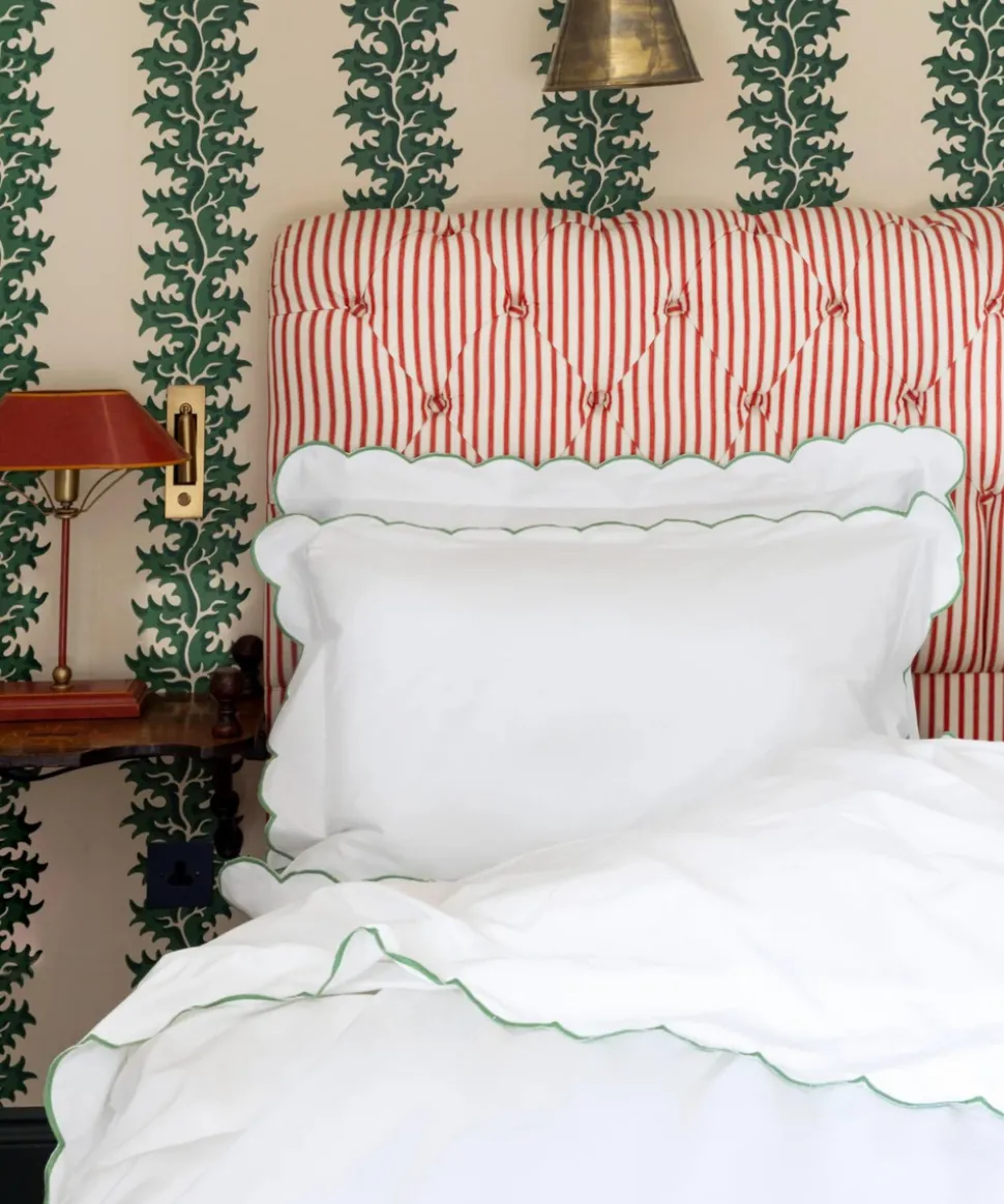A belief in buying less, and better, leads Rebecca Udall to the finest materials and most capable makers for her luxe linens and homewares. Focusing on provenance, longevity and timelessness, these are investment pieces that can elevate any table, room, or home. The Annabelle Scalloped Bed Linen range has a decorative embroidered scallop border, simply elevating bedroom decor to offer a soft, cozy, and design-forward touch. This collection is made in Portugal, where there is a longstanding history for weaving fine quality textiles.