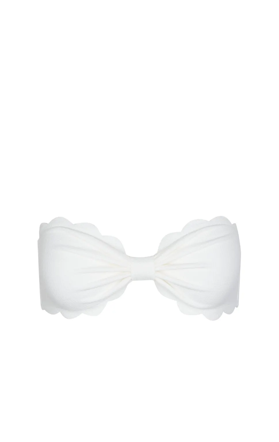 For Marysia Dobrzanska Reeves, a surfer and former ballerina, the highest quality needs to appear in every movement of her luxury swim and beachwear. Cut by hand in a couture factory, and recognizable by its signature scalloped edge, Marysia stuns from day to night, and from Biarritz to the backyard pool. Subtle and strapless, the Antibes Top is as flattering as it is simple. Pairs well with the Classic Bottoms, but it goes great with anything, especially a tan.