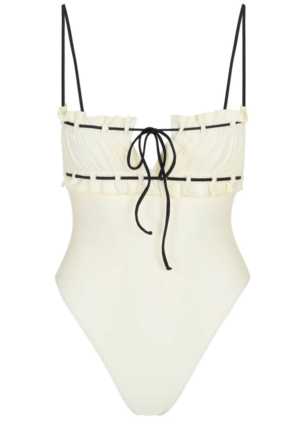 Founded from the desire to live freely—from the beach to the streets, BĀBEN is a women’s swimwear and lifestyle brand that pushes boundaries while embracing strength, beauty, and versatility. At once sporty and feminine, the brand’s bikinis, and boardshorts employ soft, luxurious fabrics, and meaningful details to make you stand out for years to come. Inspired by the Rococo, and designed to hold and flatter the female form, the Antoinette One Piece in Black & Creme boasts delicate shirring and a contrasting tie woven through 40 embroidered eyelets. Wear it to the beach, or dress it up and wear it as a chic body suit.