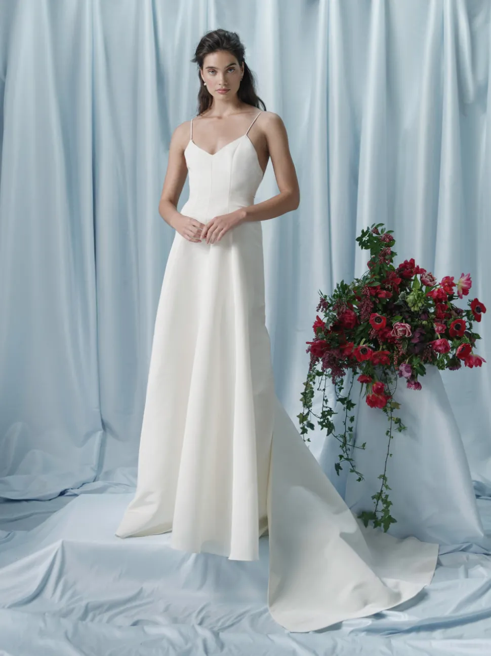 Named after a radiant group of galaxies, Markarian combines designer Alexandra O’Neill’s love of the cosmos and celestial romanticism with timeless design and modern silhouettes. A forward-thinking approach to fashion and a focus on fine craftsmanship mean Markarian is beautiful and impeccably well-made. The Antonia Gown with Bustled Skirt boasts an off-white silk faille and a stunning train with a bow detail.