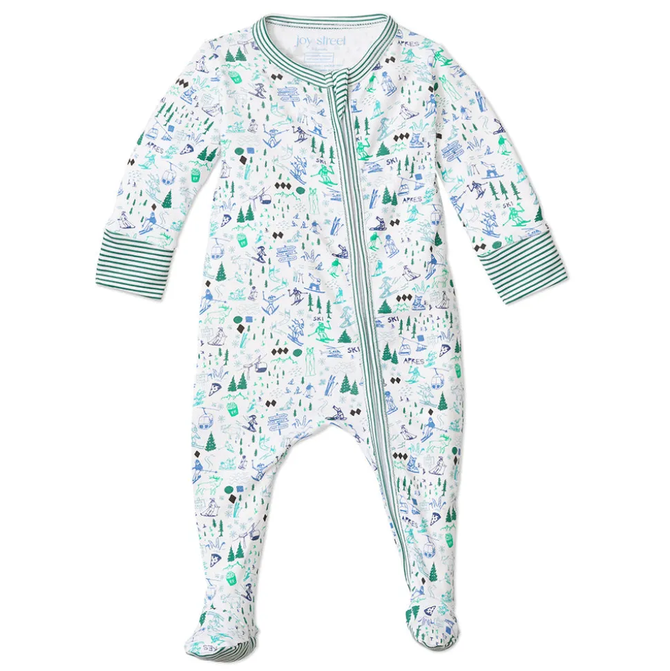 Designed with a mom’s love and made with care, Boston-based Joy Street produces small-batch kids clothes that look classic from afar, but delight in details. Crafted in luxurious 100% Peruvian pima cotton in a female-run factory, every print is hand-drawn by the brand’s founder, a new mom who prizes fit and quality above all else, and isn’t afraid of a little fun. The Après Ski Zip Baby Onesie brings mountain magic to bedtime, with playful nods to winter adventures—yeti skiers on black diamonds, steaming mugs of cocoa, and the cozy spirit of après ski fun.