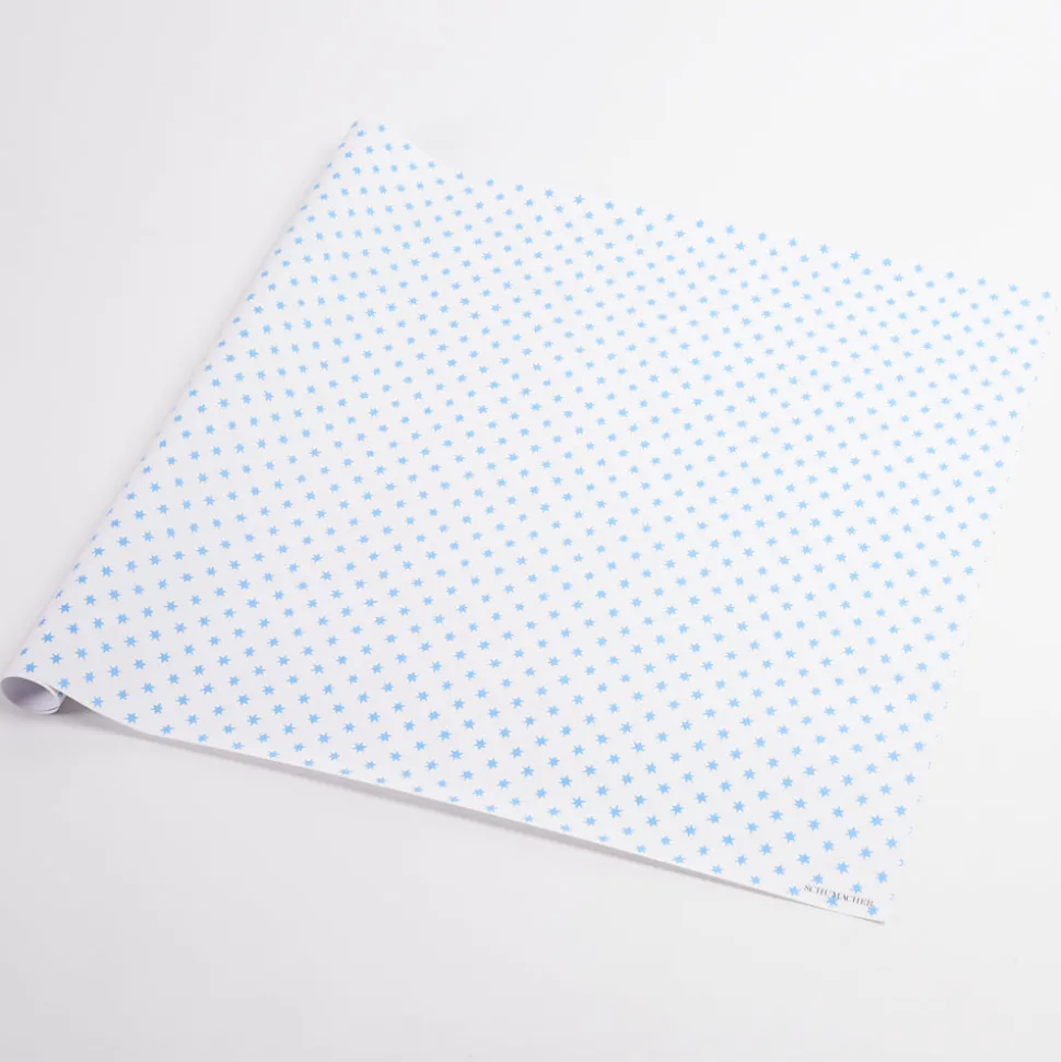 Founded by Frederic Schumacher in 1889 on Fifth Avenue in New York, Schumacher design transcend trends and time with generations-tested unwavering devotion to beauty and quality. Their luxury pillows, fabric, wallpaper, furniture, and paper products allow decorators and shoppers alike to create with total confidence. Created by legendary set designer Hobe Erwin, the Astral Wrapping Paper In Blue is lusciously thick and features a galaxy of small six-pointed stars.