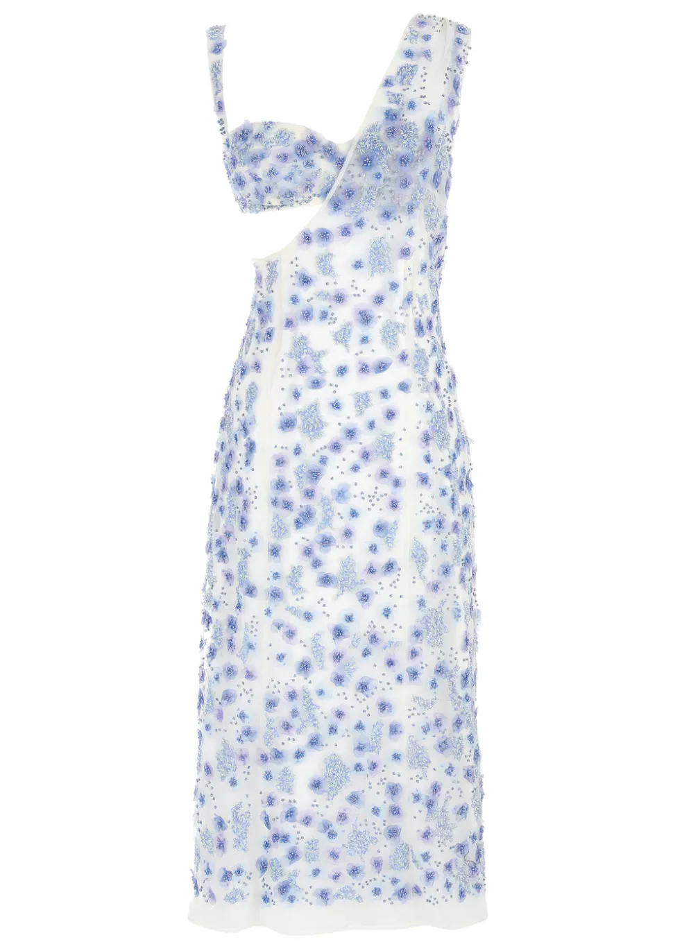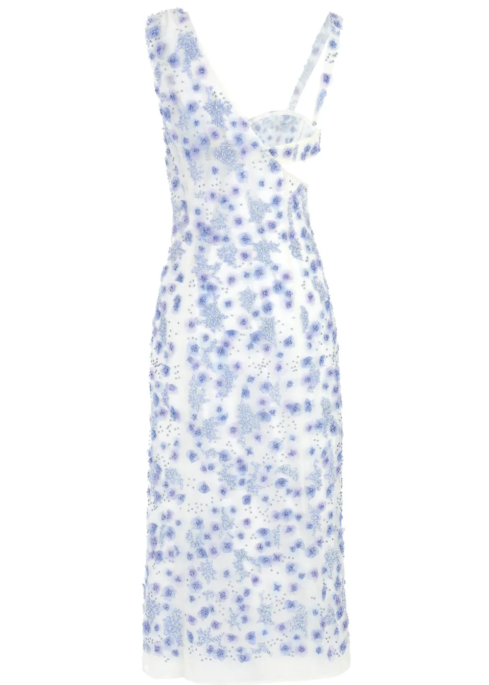 Founded by design duo Jeffrey Taylor and Roy Carey, JEOFROI is a demi couture-minded brand based in Atlanta with standout occasion-wear at its forefront. Finally, the cheeky take on the classic sheath you have been looking for. With the Asymmetrical Blooming Dress, laser-cut silk flowers are hand-embroidered in hues of blue over a silk tulle bodice.