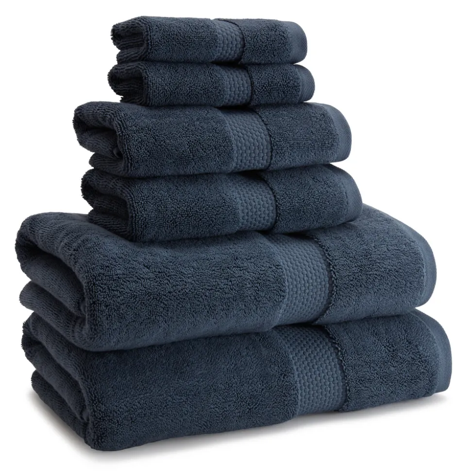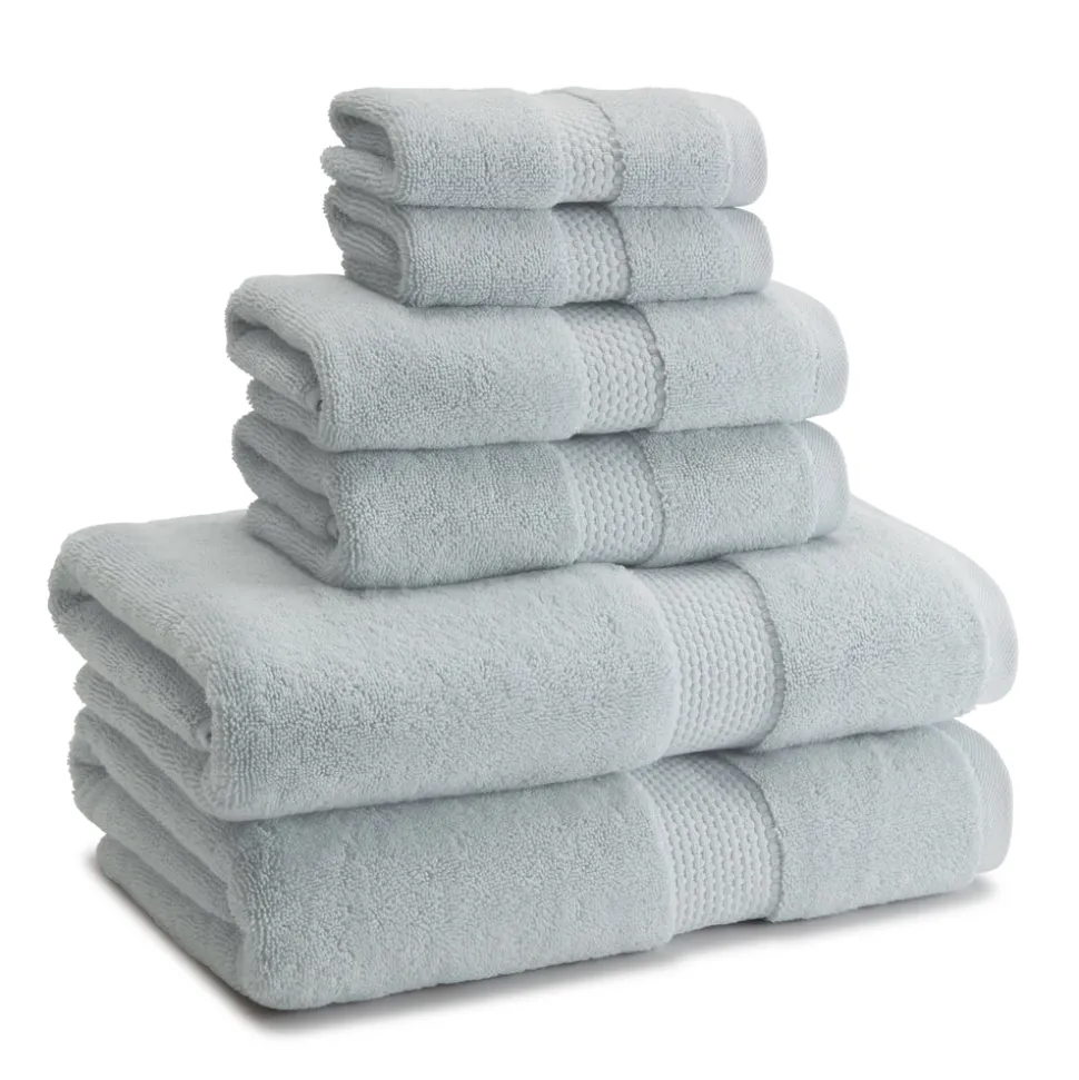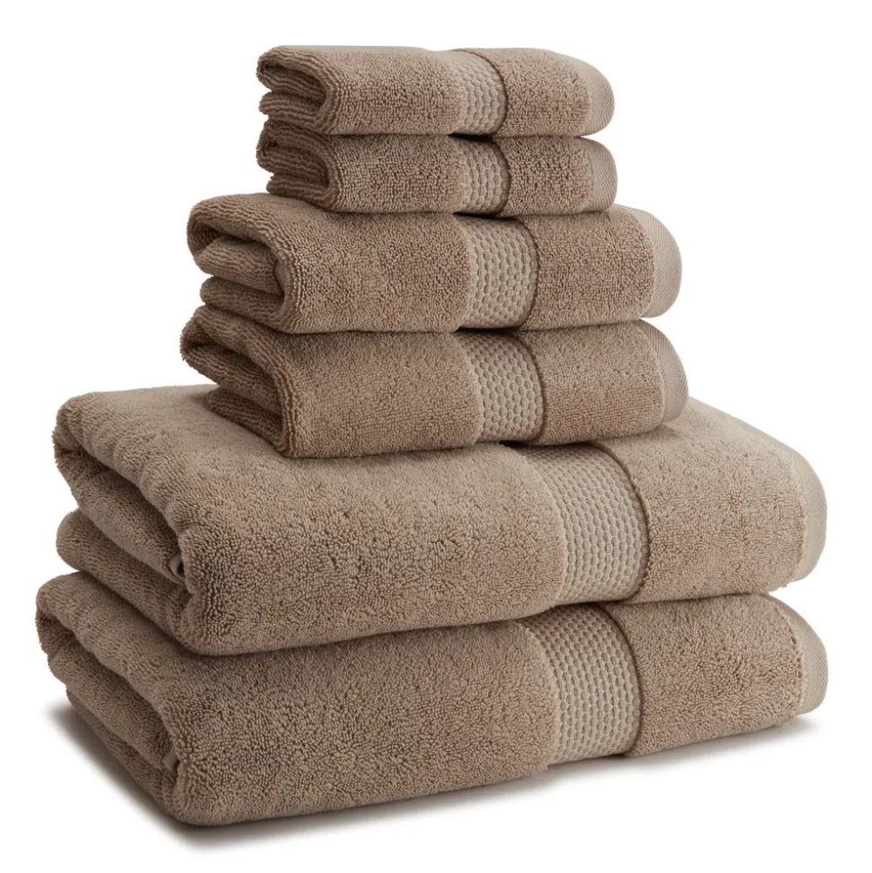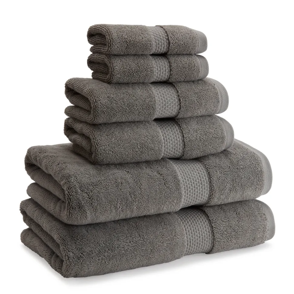 100% combed Aegean and Pima cotton. The bath towel features a sewn-in hanger loop.
