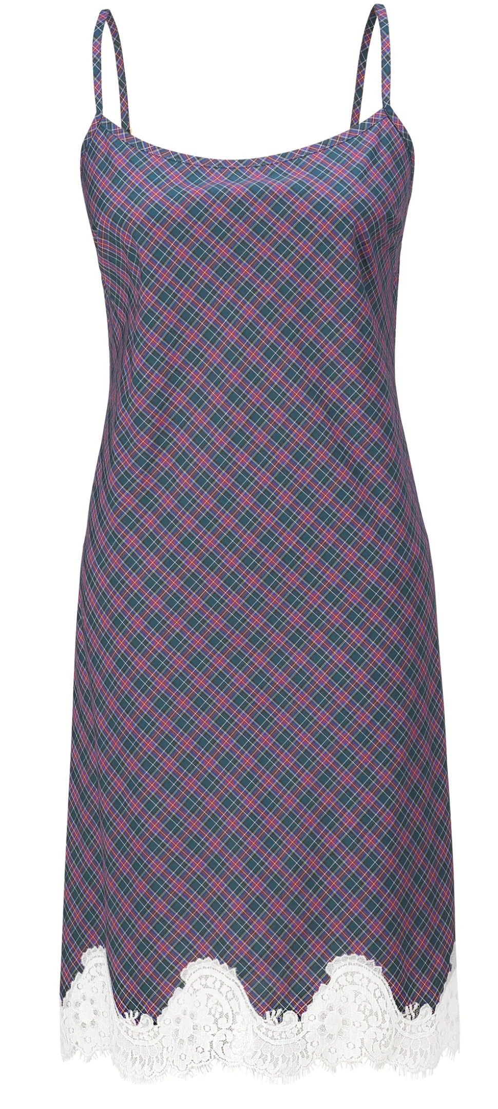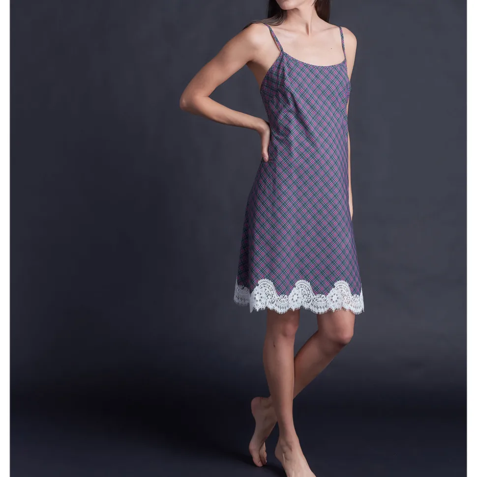 The Athena mid-length, bias cut slip is a classic piece of feminine nightwear. The curved neckline features an adjustable strap detail, and there is a keyhole opening at the back for ease of slipping in and out. And it features a soft, delicately cut out French lace hemline that slopes gracefully around the knees.