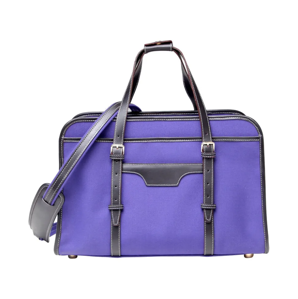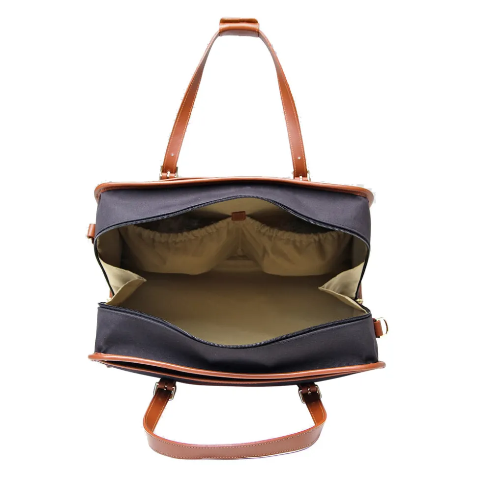 2 leather handles are adjustable between a 5” drop and a 9.5” drop. Carry by hand or over the shoulder. The leather trolley strap allows for attachment to the retractable handle on our trolley or wheeled case.