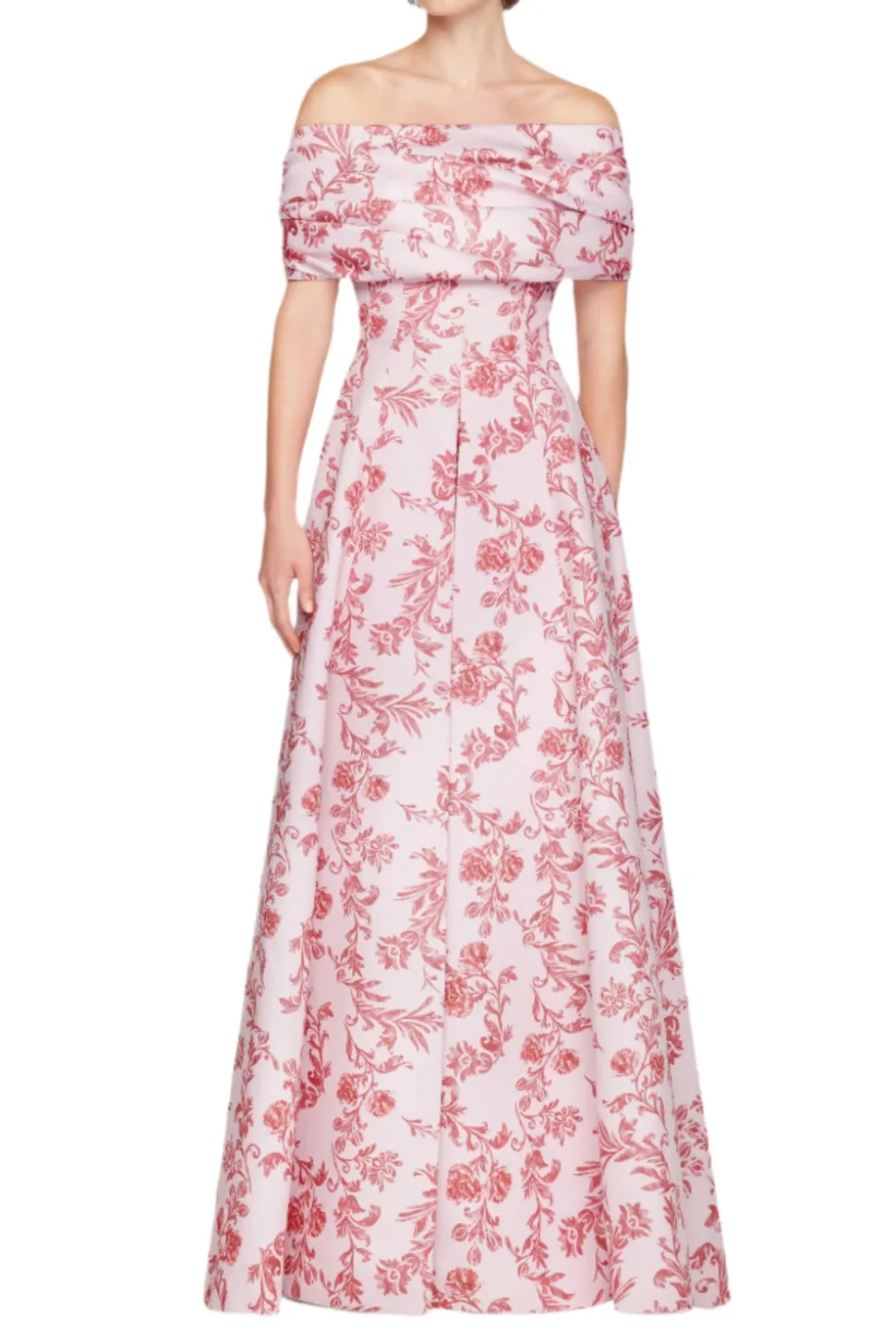 Emilia Wickstead is the epitome of modern femininity. Established in the U.K. in 2008, the ready-to-wear designer is known for impeccable tailoring, bold color, and timeless quality. With sculptural elegance and a modern edge, the Auclair Dress in Pink Floral Damask Taffeta Faille is a refined choice for elevated eveningwear. Featuring a delicate pink damask motif, this off-the-shoulder gown is shaped to a floor-length silhouette with graceful wrap-effect detailing that offers upper arm coverage.