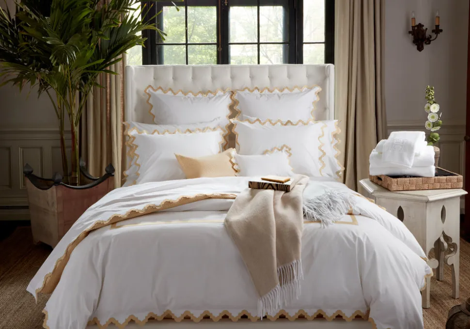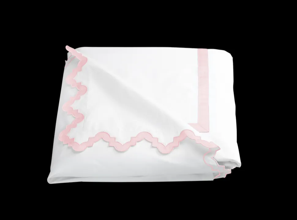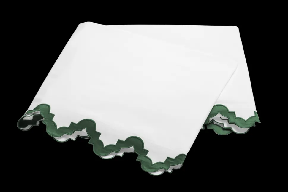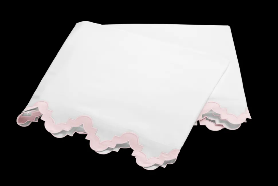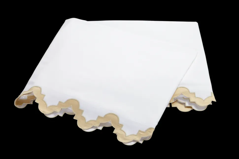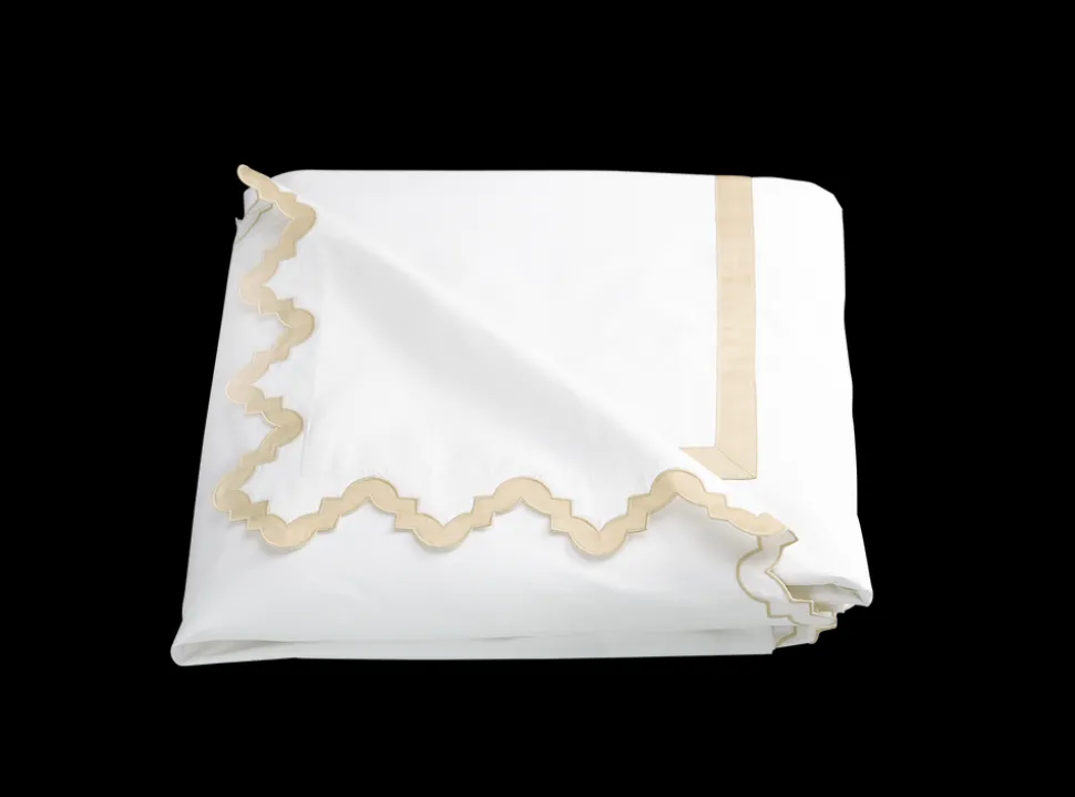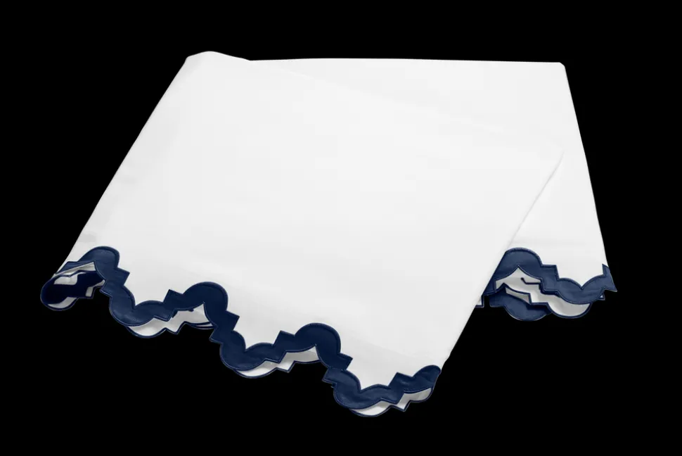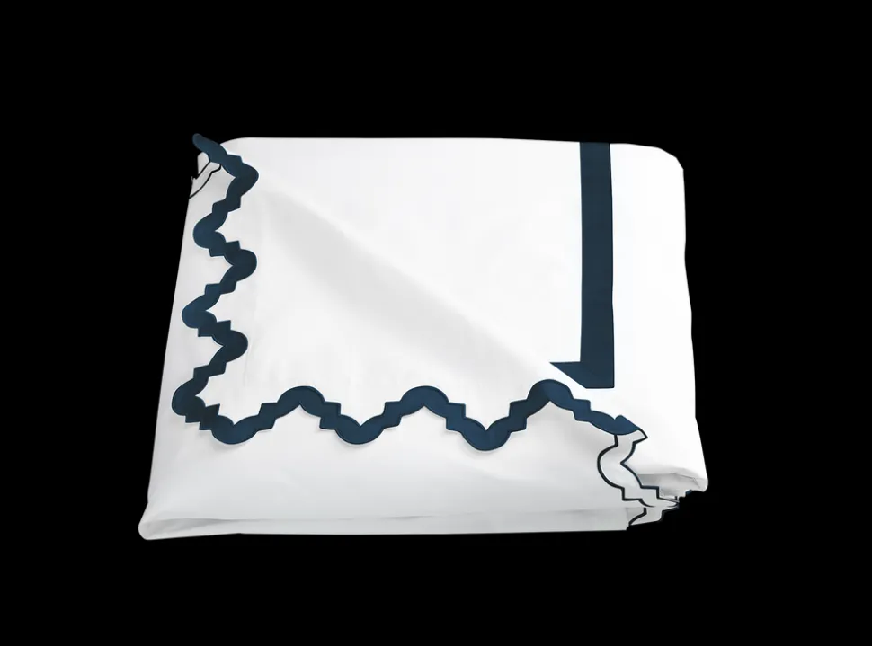 For nearly 100 years and three generations, Matouk has handcrafted luxury linens from the world‚Äôs finest materials. Their dedicated artisans in Fall River, Massachusetts are committed to creating the highest quality, most-loved bed, bath, and table linens for your home. Inspired by the elegant geometry of Moroccan tiles, Aziza (a name that translates to ‚Äúbeloved‚Äù) boasts a zig-zag appliqué cut from Nocturne sateen sewn onto the brand‚Äôs popular 600 thread count Milano Egyptian cotton percale sheeting. This collection is a slightly exotic, alluring addition to your bedroom. Pair with Matouk‚Äôs Aziza bed linens and the coordinating Milano Fitted Sheet.