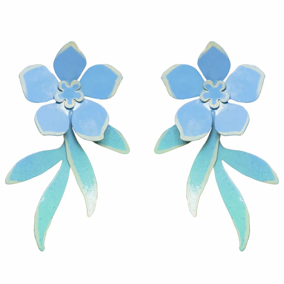 Founded in 2002 by designer Jade Gedeon, We Dream In Colour is powered by a team of women at their North Shore studio in Boston. Each piece of jewelry is assembled by hand, and the company works hard to operate in a socially conscious fashion every step of the way while creating their whimsical, elegant designs. The Azure Millias Earrings feature a sweet assemblage of blooms and gently curving vines that are hammered out of thin brass sheet and layered for a striking three-dimensional effect.