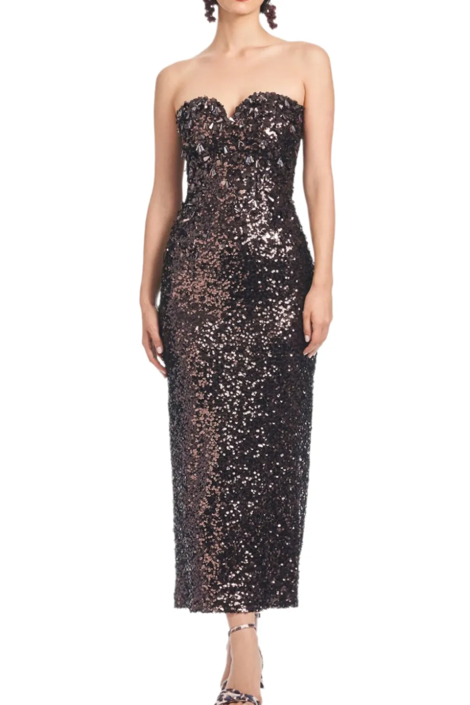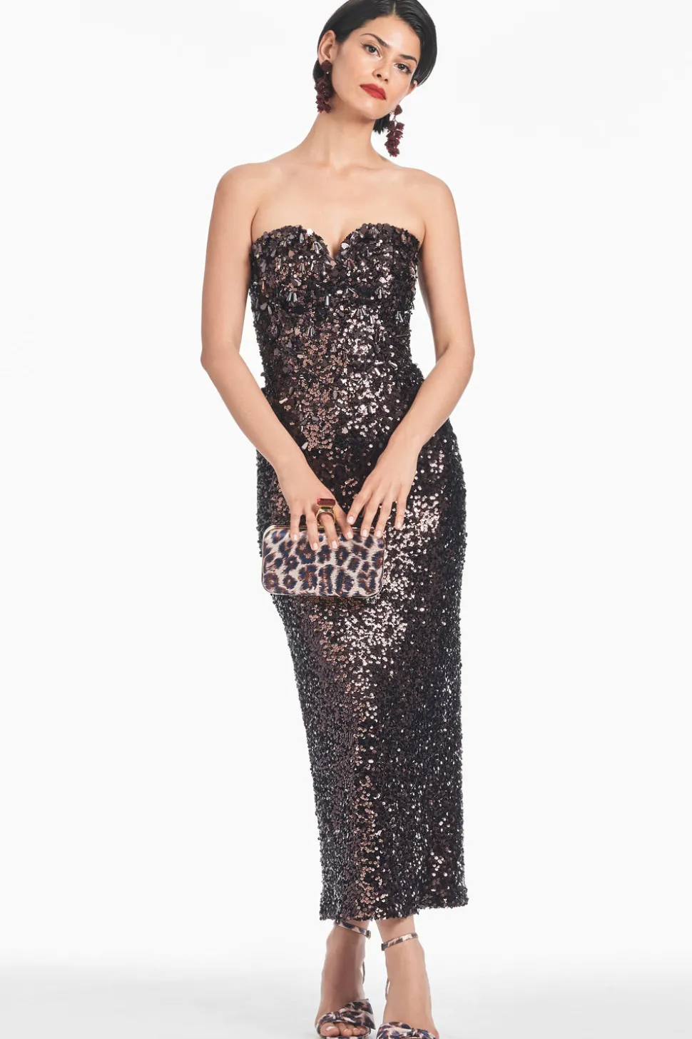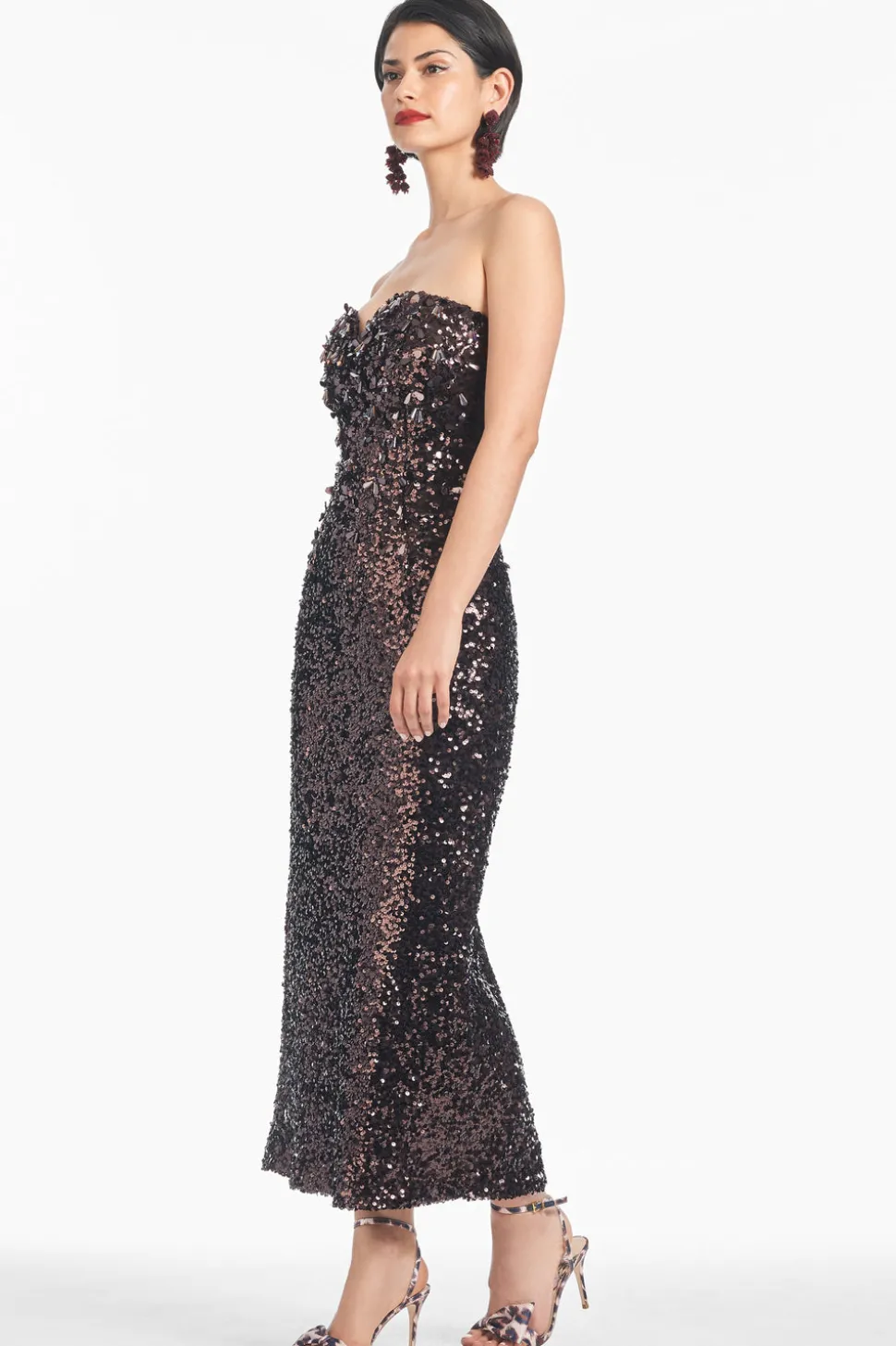 Born in India, Sachin and Babi bonded at New York’s Fashion Institute of Technology and launched an embroidery business, working with top houses, like Oscar de la Renta, and Manolo Blahnik. Today, the brand works with their own factory in Mumbai, controlling quality at every stage, and producing womenswear that is at once unique, beautiful, and wearable. The Babe Dress in Plum features a strapless sweetheart neckline, all-over plum sequins, and the extra embellishment on the bodice all come together to make magic.