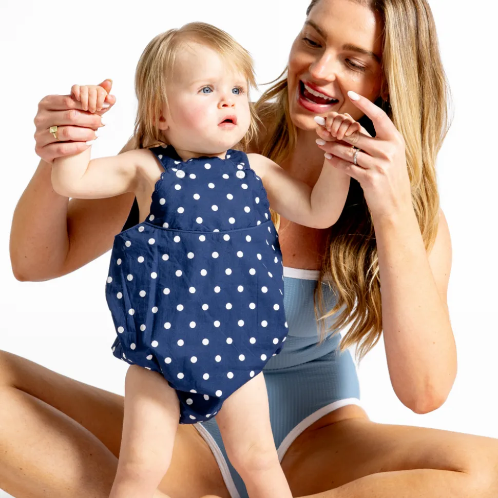 A family favorite for its clean lines and simple details, minnow creates pieces that are playful, polished, and thoughtfully designed for long days, sandy toes, and the wonderment of life on the shore. Crafted from a premium French Terry, the Baby Atlantic Dot Scalloped Bubble Romper is comfortable and soft with thoughtful details like back buttons at the neck and covered snaps to help make changes a breeze.