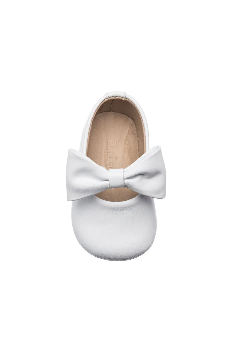 Premium leather with soft, flexible design. Adorable ballerina shoes with show-stopping bow. Soft, springy soles with “paw” grip design. Soft leather lining for comfort and breathability. Ideal for crib use and first steps.