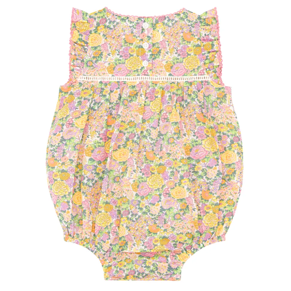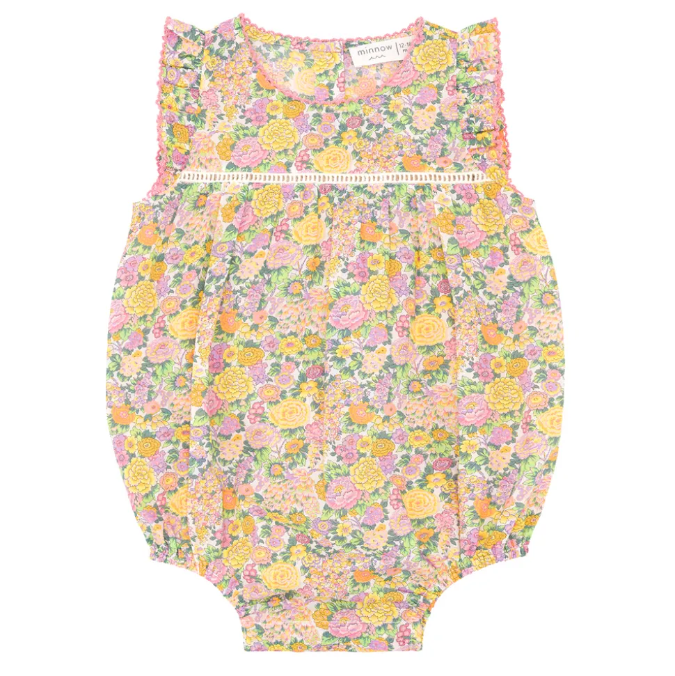 A family favorite for its clean lines and simple details, minnow creates pieces that are playful, polished, and thoughtfully designed for long days, sandy toes, and the wonderment of life on the shore. Crafted from a premium cotton, the Baby Girl Elysian Day Bubble Romper is comfortable and soft with thoughtful details like back buttons at the neck and covered snaps to help make changes a breeze. Features the adorable Liberty fabric.