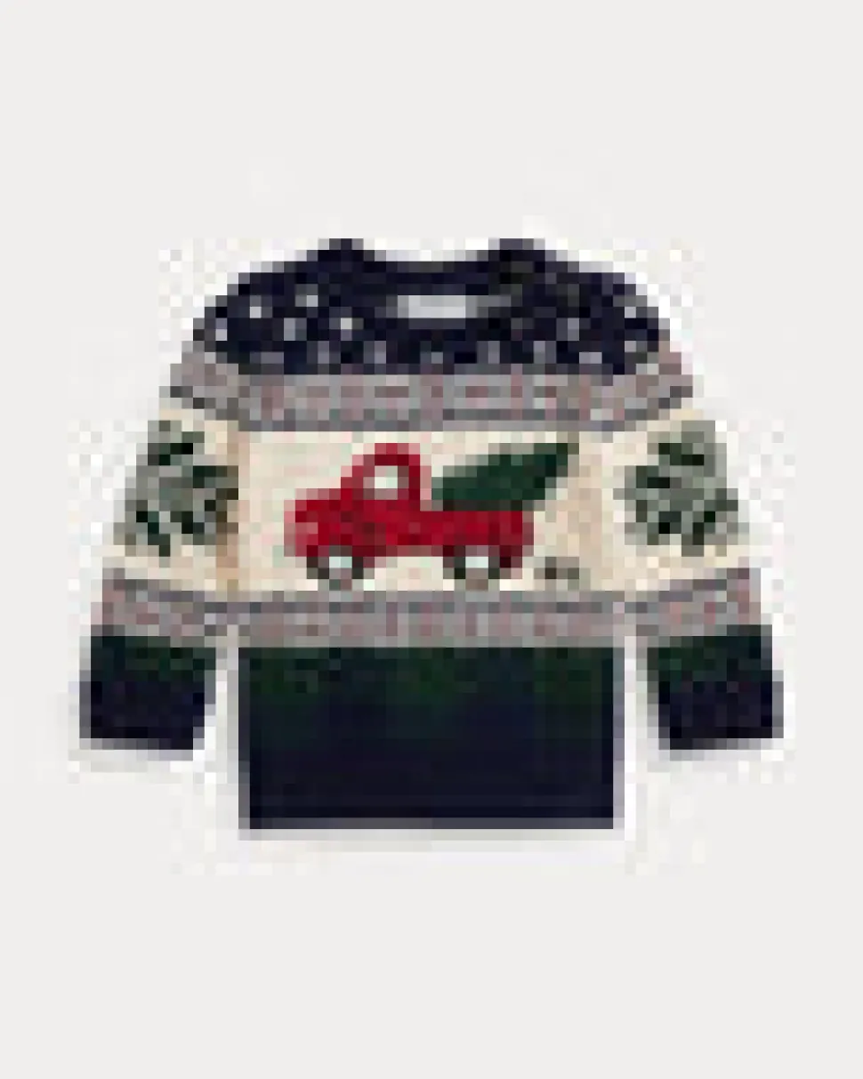 Classic designs for their arrival and all the “firsts” to follow, from organic cotton onesies to iconic Polo Shirts and playful sets. Discover timeless essentials and thoughtful gifts to celebrate every milestone. The Truck-Intarsia Cotton Sweater features a festive red truck hauling a pine tree, woven into a chunky-knit cotton design with snowflake and plaid motifs—bringing cozy charm to your little one’s winter wardrobe.