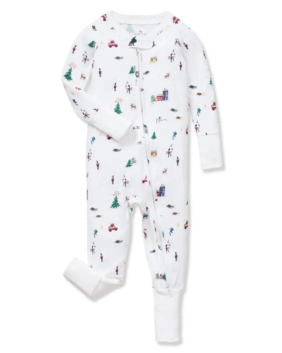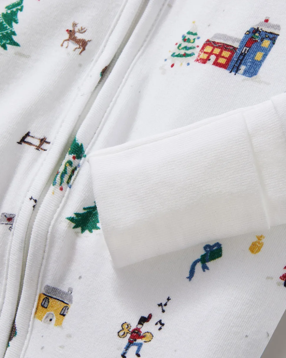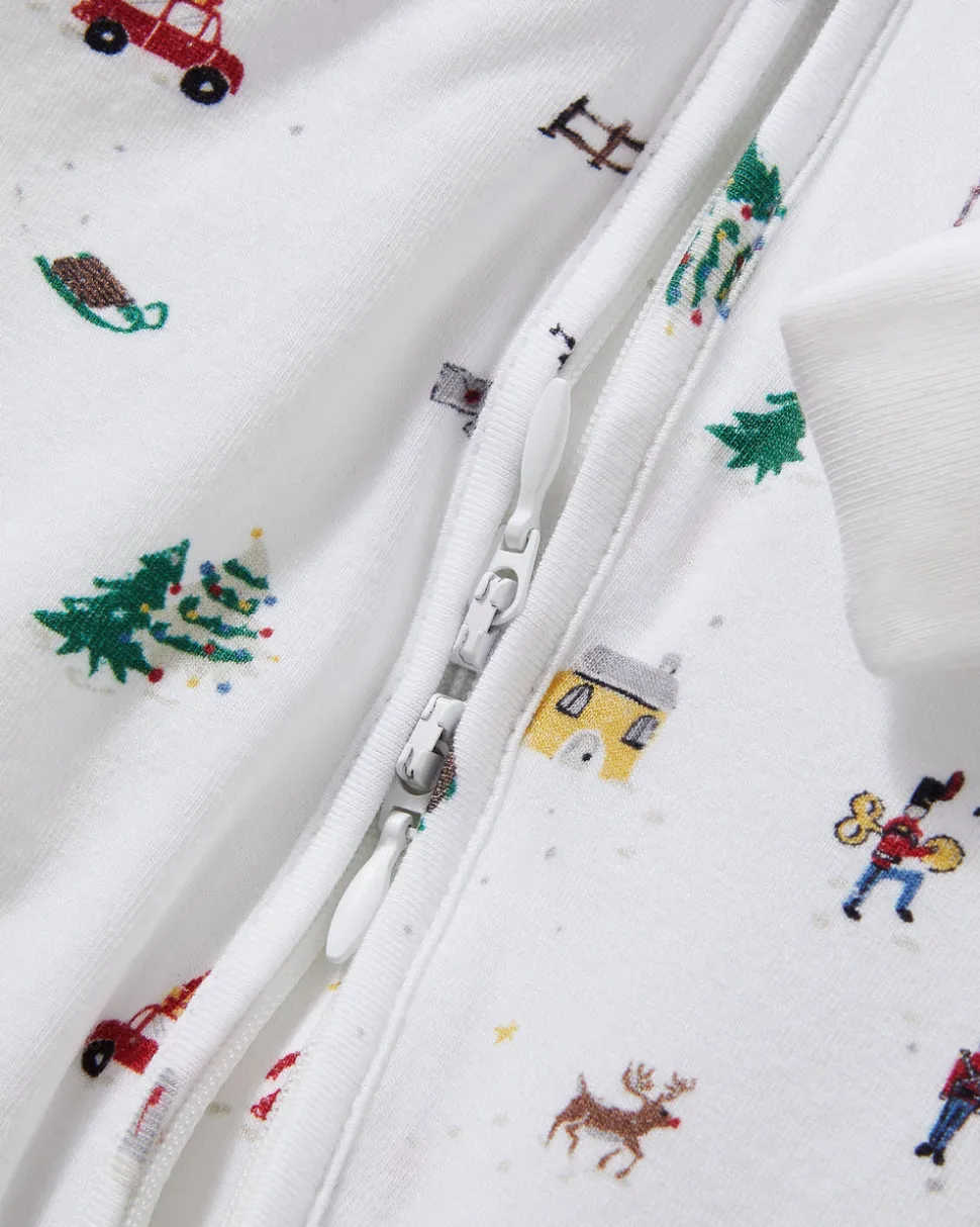 Petite Plume wishes you a “bonne nuit,” and in their luxury sleepwear, it’s hard not to oblige. The joyful sights of this peaceful holiday village will take you down memory lane in the Baby’s Pima Peekaboo Romper in Holiday Town. This snuggly one-piece is designed to cocoon little ones in buttery softness, while thoughtful details ensure lasting comfort as they grow.
