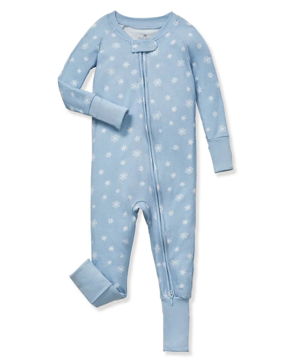 Petite Plume wishes you a “bonne nuit,” and in their luxury sleepwear, it’s hard not to oblige. Snowflakes of all sizes have fallen onto this sweet holiday print. In crisp white and icy periwinkle, the Baby’s Pima Peekaboo Romper in Periwinkle Wonderland will keep you cozy throughout chilly winter nights. This snuggly one-piece is designed to cocoon little ones in buttery softness, while thoughtful details ensure lasting comfort as they grow.