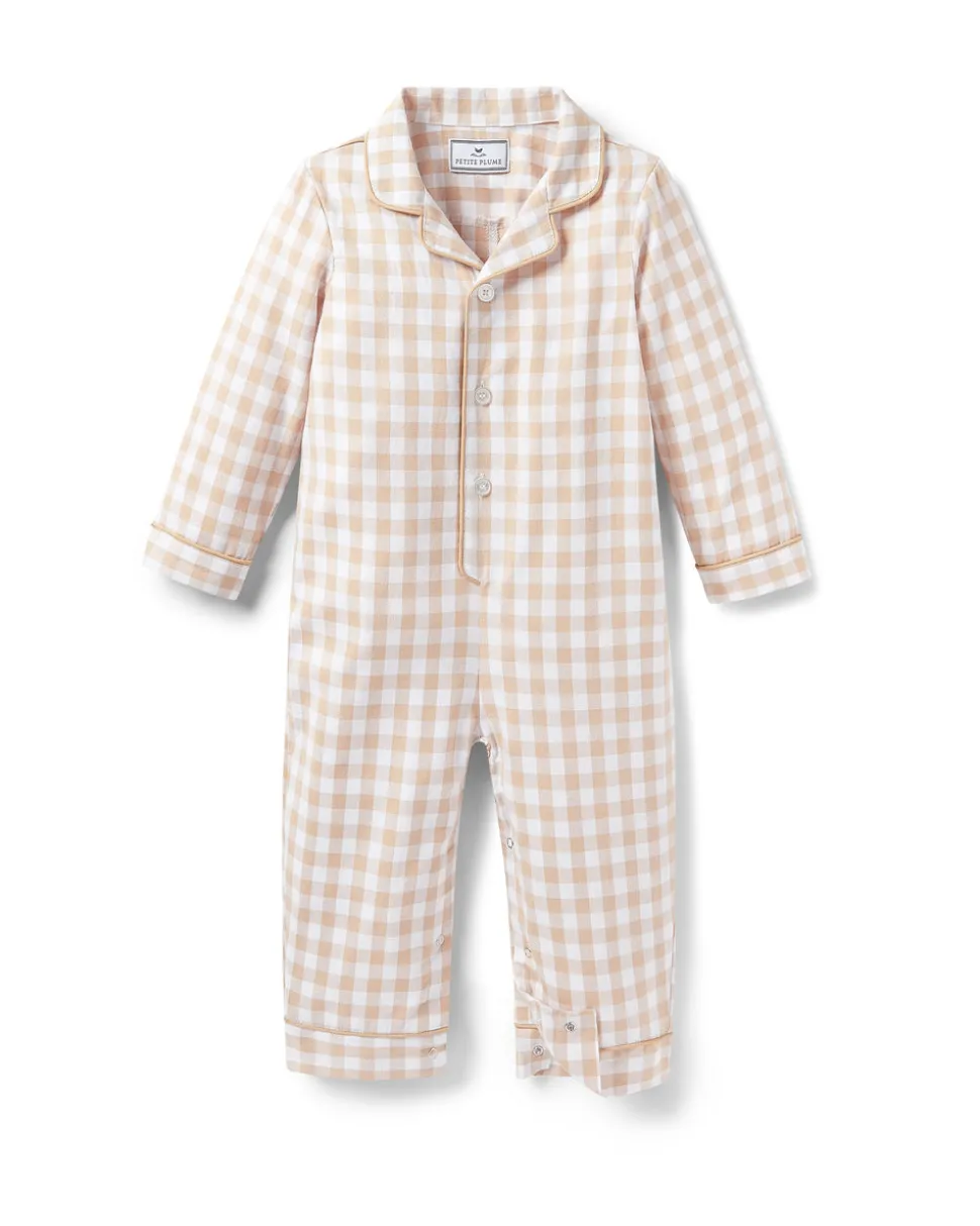 Petite Plume wishes you a “bonne nuit,” and in their luxury sleepwear, it’s hard not to oblige. The end of summer does not mean you have to retire your gingham. This romper is made of the softest brushed fabric which will allow your little one to walk, crawl, or relax in comfort. The sweetly piped back pocket is perfect for monogramming.