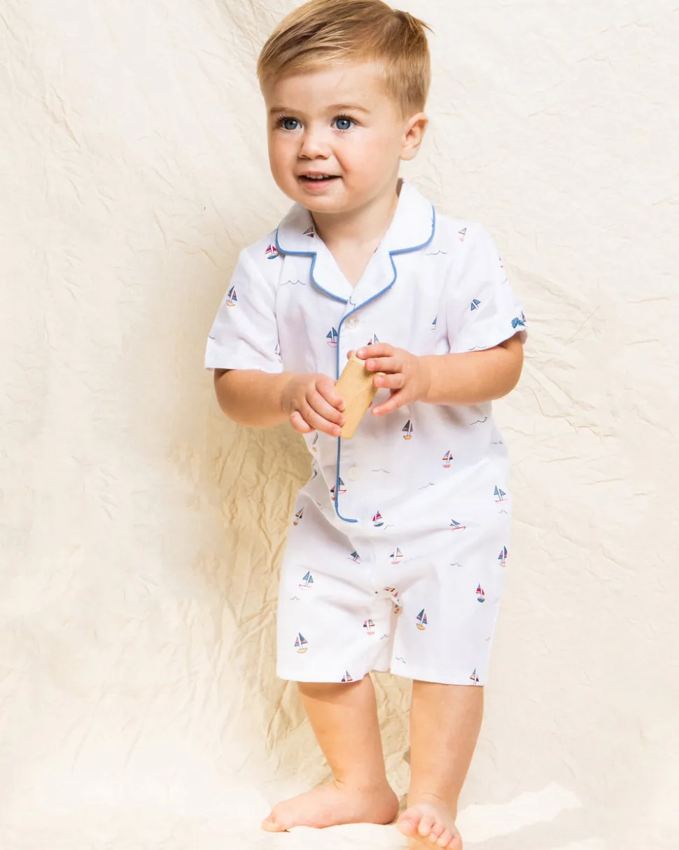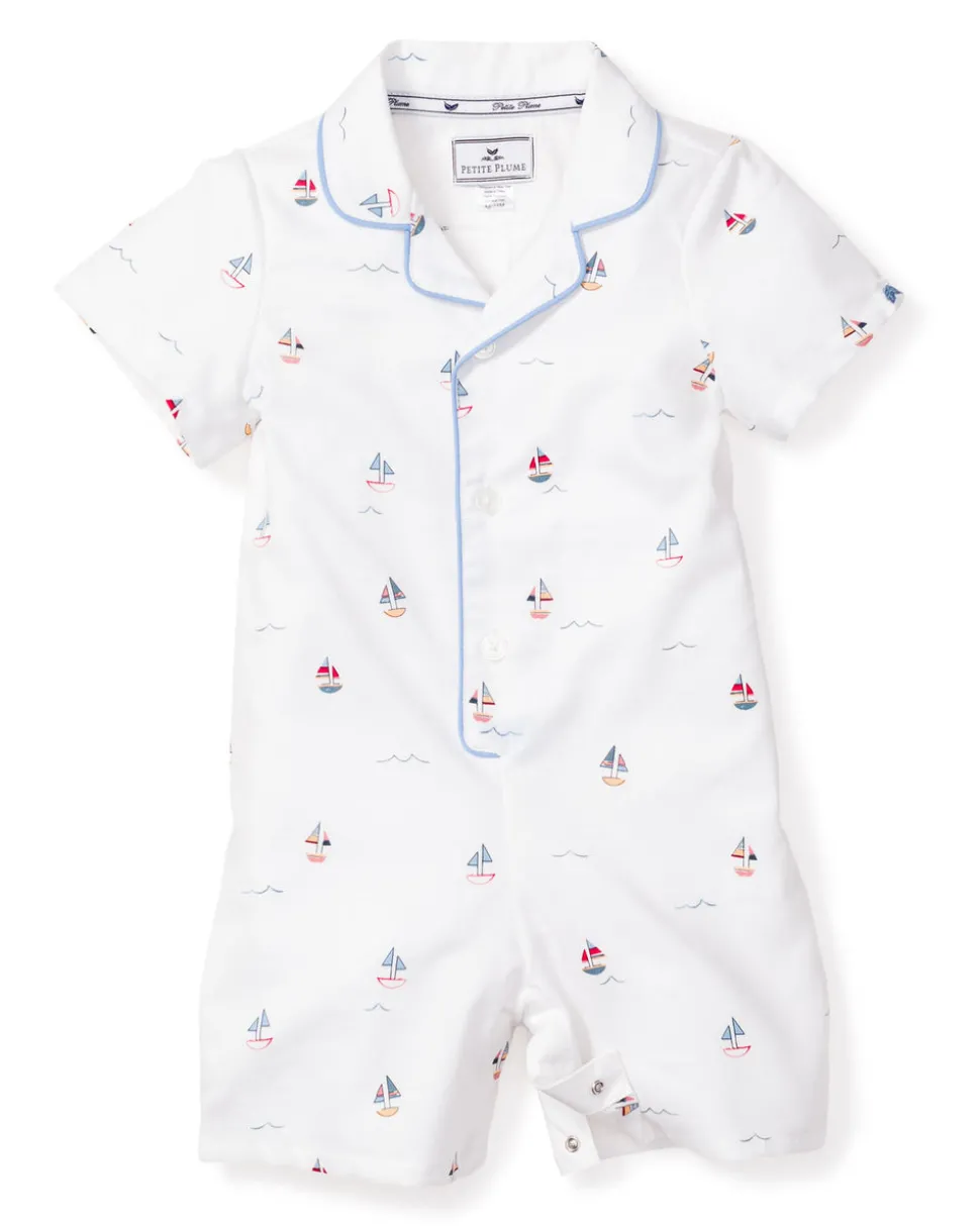 Petite Plume wishes you a “bonne nuit,” and in their luxury sleepwear, it’s hard not to oblige. Crafted in exquisite cotton, with the finest attention to detail, Petite Plume delivers the utmost comfort and sophistication. The Summer Romper is made of the softest brushed twill fabric which will allow your little one to walk, crawl, or relax in comfort. The sweetly piped back pocket is meant for monogramming. The sleepwear is made from the finest quality yarn-dyed cotton and blended with just enough inherently flame retardant fiber to allow it to pass strict CPSC flame retardant laws without using harmful chemicals. The fabric is brushed for added softness, making the sleepwear feel absolutely luxurious, getting cozier after each wash.