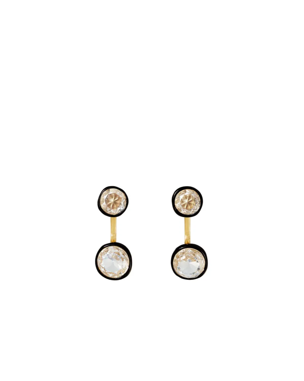 Whimsical, colorful, and crafted with tone-perfect details, Roxanne Assoulin’s four decades of experience—designing for the likes of Marc Jacobs and Oscar de la Renta—are expressed in every piece of her candy-inspired collection of bracelets, chokers, earrings, and more. As the brand likes to say, and as every “it” girl knows, it’s jewelry that makes you smile. The Back in Black Float Earrings are glass stone drop earrings with hand-painted enamel plating and removable floating backs. Can we worn as studs or float earrings