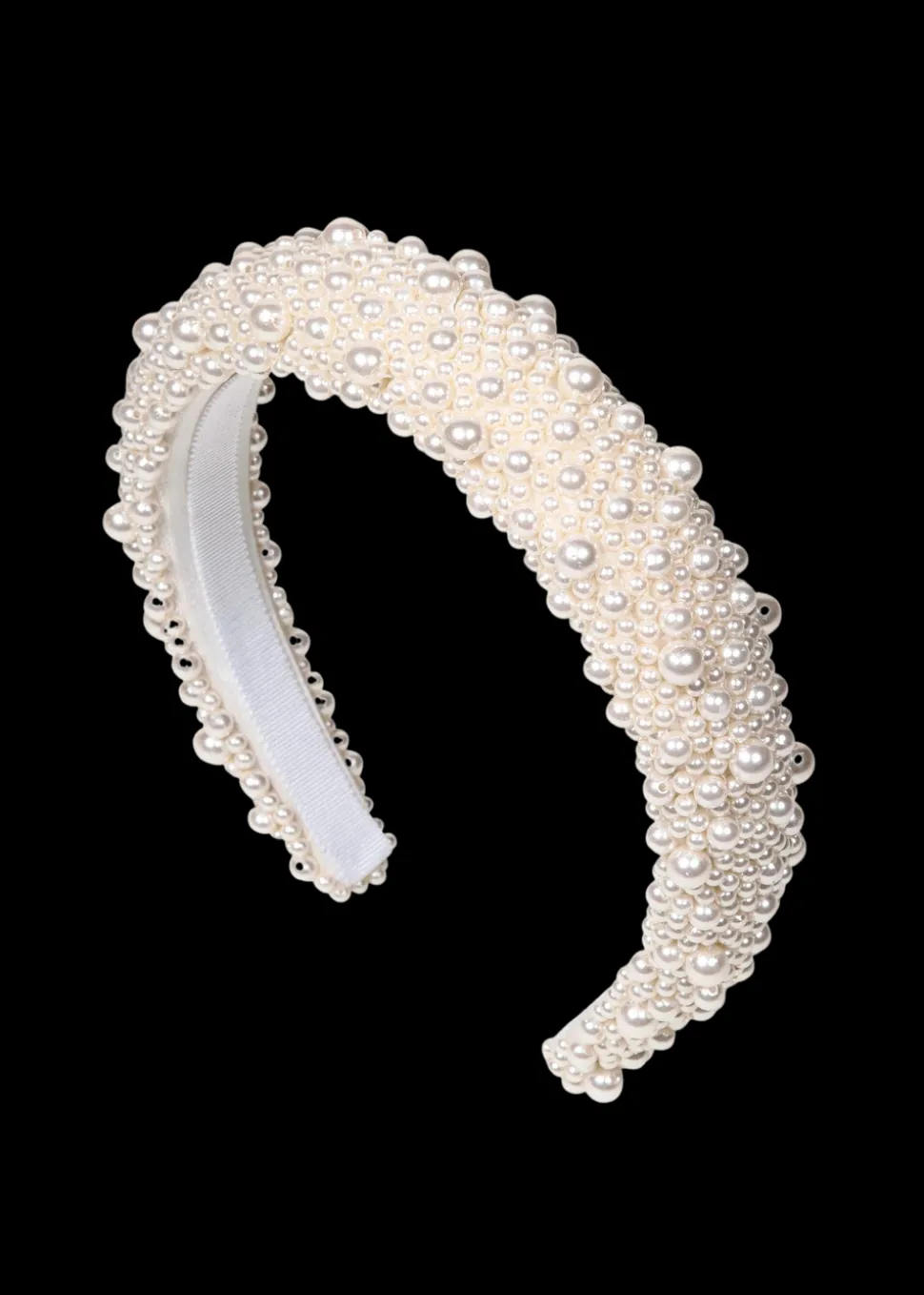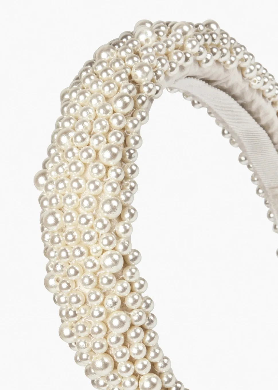 The Bailey Headband is made in New York of pearl embellishment and lined in silk to ensure ultimate comfort and promote hair health.
