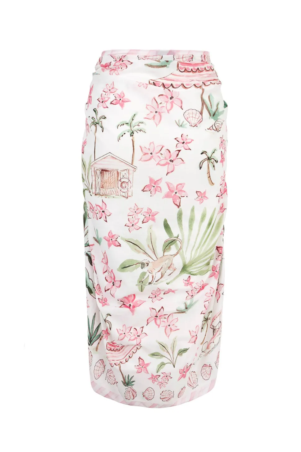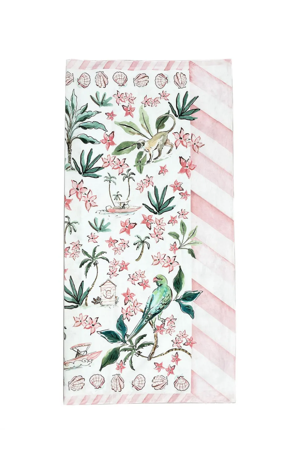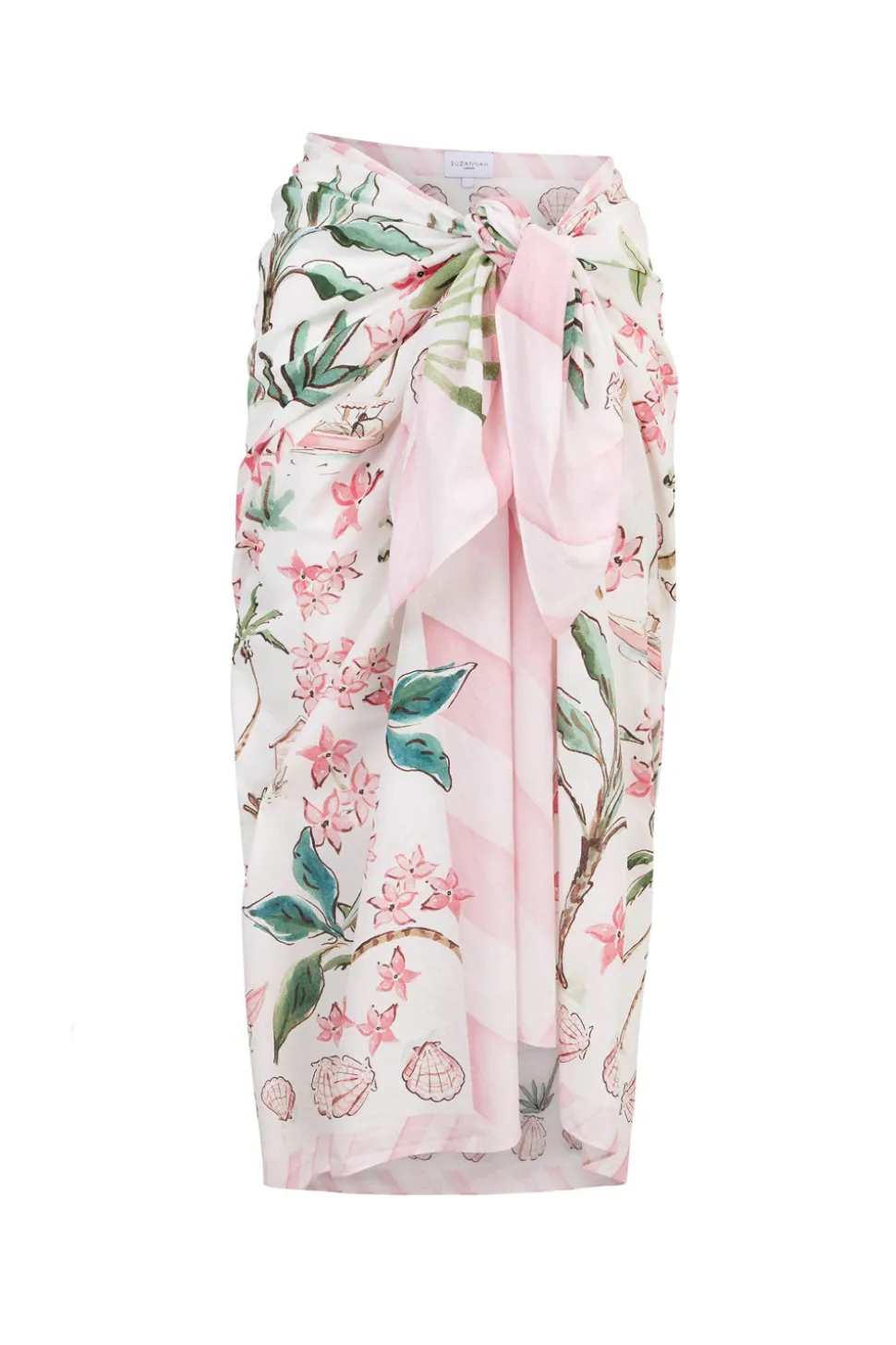 Since 2006, British designer Suzannah Crabb has created high-luxury womenswear pieces. Each piece is sustainably made, flawlessly crafted, ultra-flattering, and an excellent choice for all your special occasions. Inspired by Crabbs’s love for travel and Cobblers Cove in Barbados, she and renowned illustrator Susannah Garrod designed this mesmerizing print filled with jasmine flowers, palm fronds, and striped parasols. This beautiful simple oblong pareo can be fashioned into a simple wraparound skirt, cover up, or even beach throw.