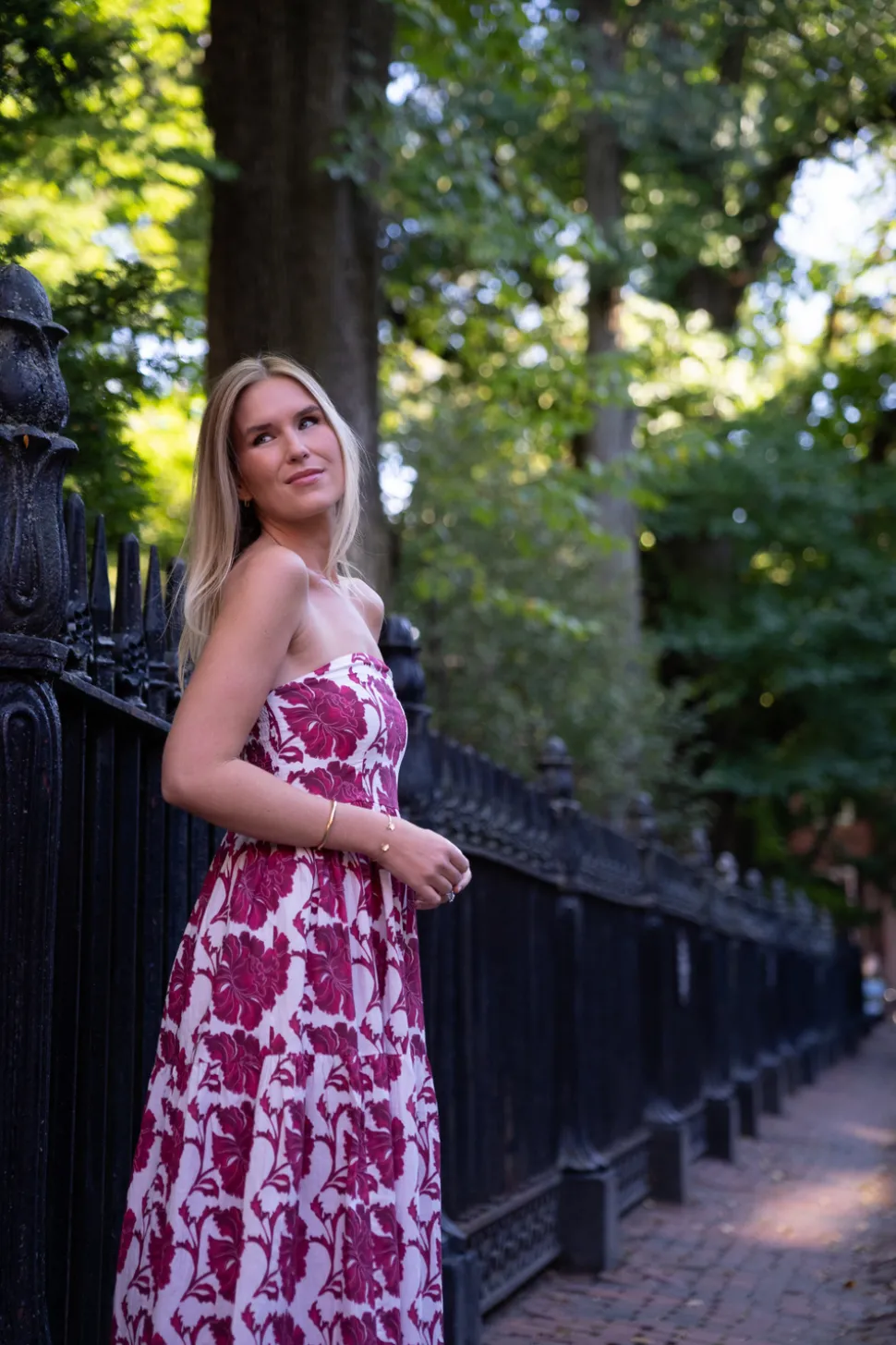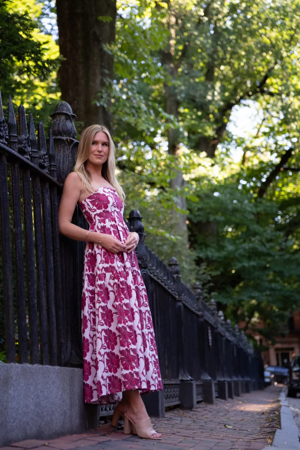 Crafted by artisans, every KAHORA design exudes an effortless charm that is vacation-ready. These timeless pieces are meant to be worn and adored for years to come. Intentional and thoughtful, materials are hand-selected for its quality and hand-cut to minimize waste. The Barbie Dress in Dahlia is ideal for a wedding paired with pretty sandals or espadrilles. Straight across bodice makes a beautiful silhouette. Side zipper and mid-calf length. It is made of cotton and has smocking at the back for an easier fit.