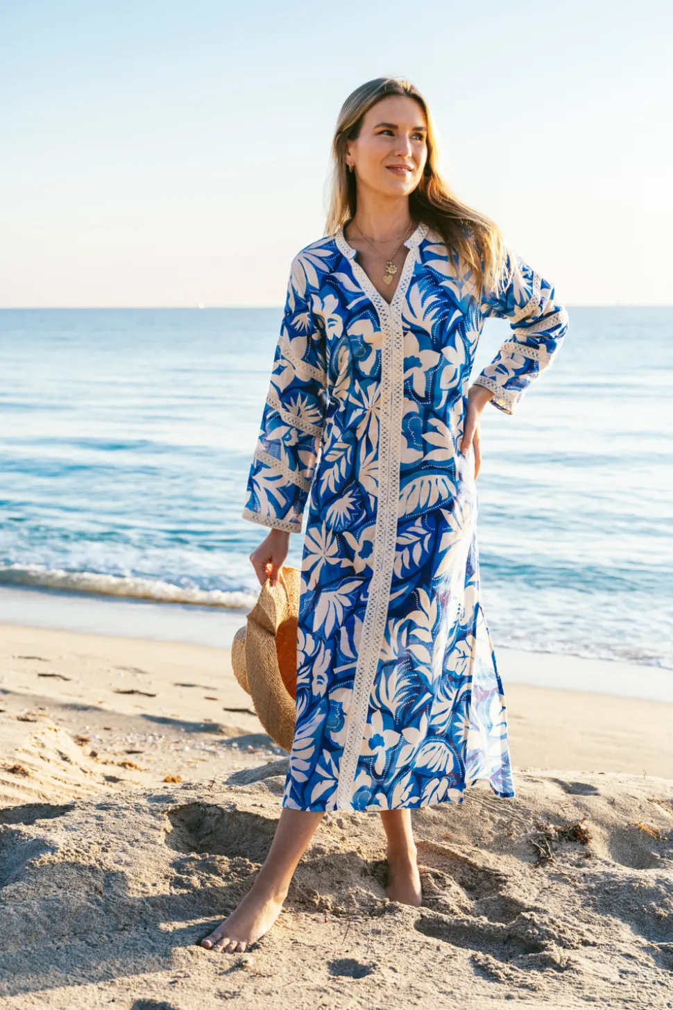 Crafted by artisans, every KAHORA design exudes an effortless charm that is vacation-ready. These timeless pieces are meant to be worn and adored for years to come. Intentional and thoughtful, materials are hand-selected for its quality and hand-cut to minimize waste. The Bardot Dress in Dane features a beautiful and breathable cotton fabric that looks like linen and is the ideal combination of lightweight, soft and aesthetically flattering. Special features include cotton lace trim decorating the front and sleeves, V-neck and split hem. May be worn with or without belt.