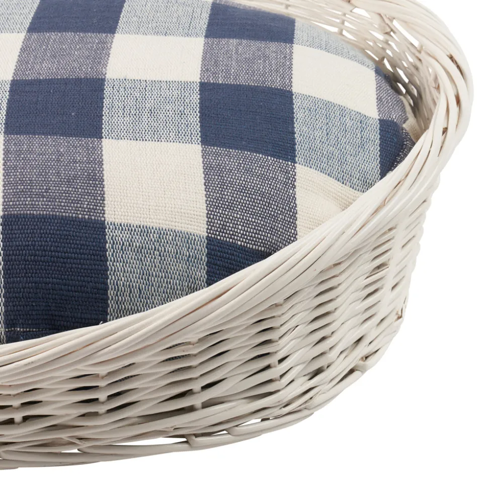 Founded by Frederic Schumacher in 1889 on Fifth Avenue in New York, Schumacher transcends trends and time with generations-tested unwavering devotion to beauty and quality. Their luxury pillows, fabric, wallpaper, trim, and furniture allow decorators and shoppers alike to create with total confidence. House your dog in high style and keep tails wagging with the Barnes Performance Check Dog Bed. It combines the look of a white wicker basket with a removable cushion done up in a durable stain-resistant fabric that has a fun large-scale check. The bed is filled with a premium fiber that looks and feels like down, while hidden zippers ensure easy cleaning.