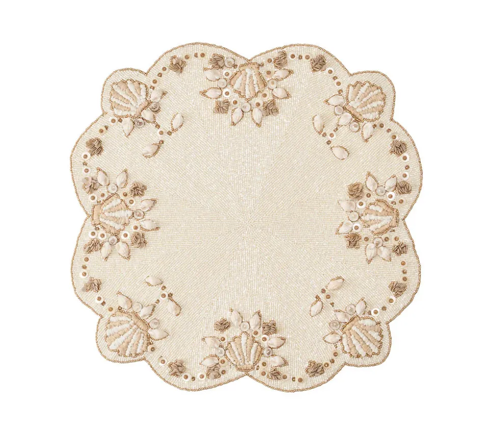 Kim Seybert designs artisan-made tabletop decor and luxury home accessories. Create a well-dressed dining look with the brand’s range of elegant tableware, placemats, runners, chargers, plates, napkins, flatware, and more. The Beachcomber Napkin in Natural, Ivory & Gold, Set of 4 captures the joy of discovering seaside treasures with hand-embroidered shell motifs in each corner. The soft, natural-toned linen napkin effortlessly sets the mood for exquisite entertaining from coast to coast.