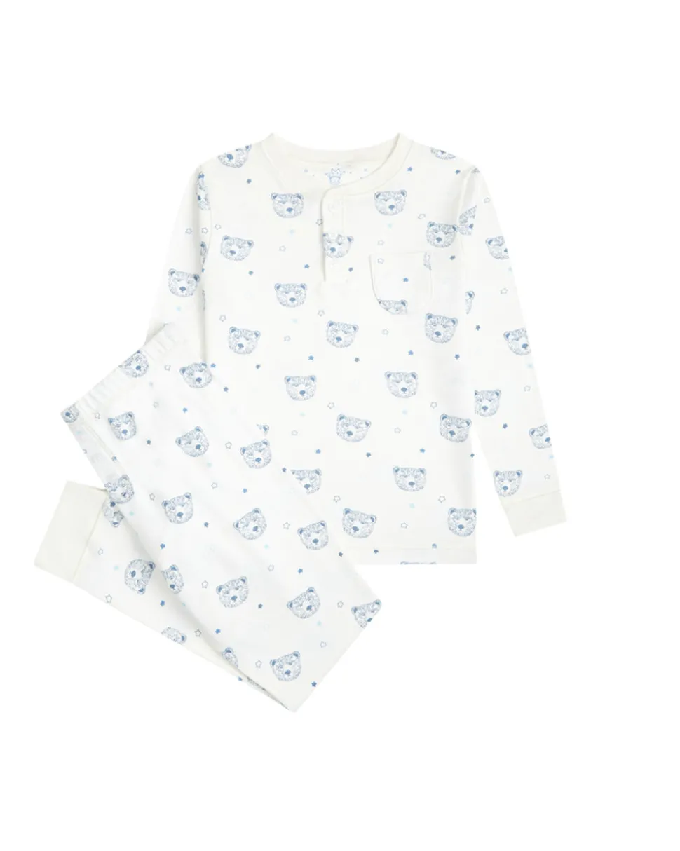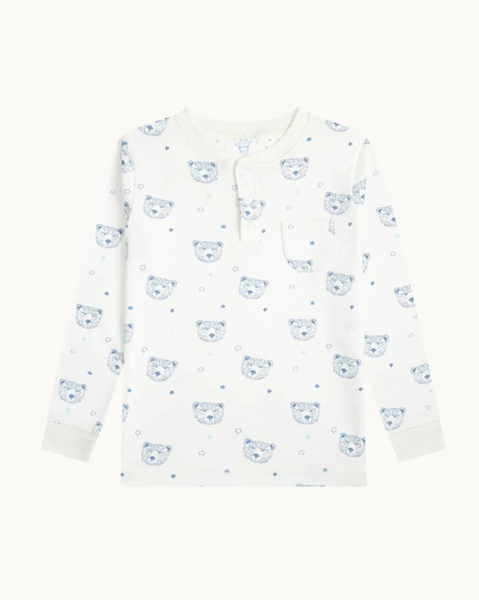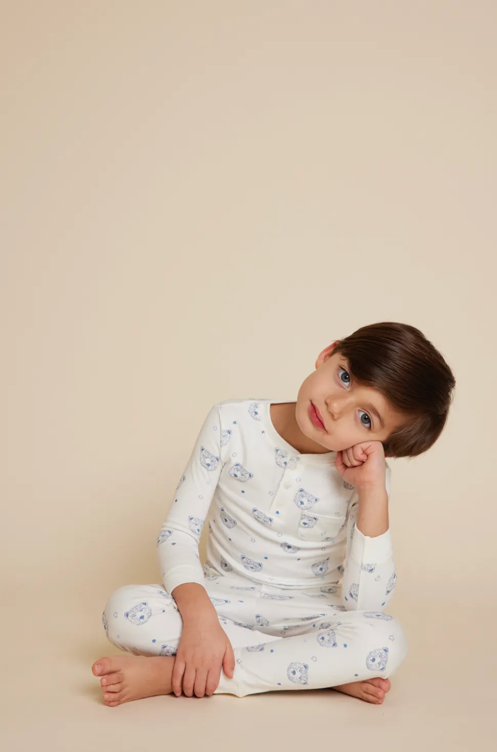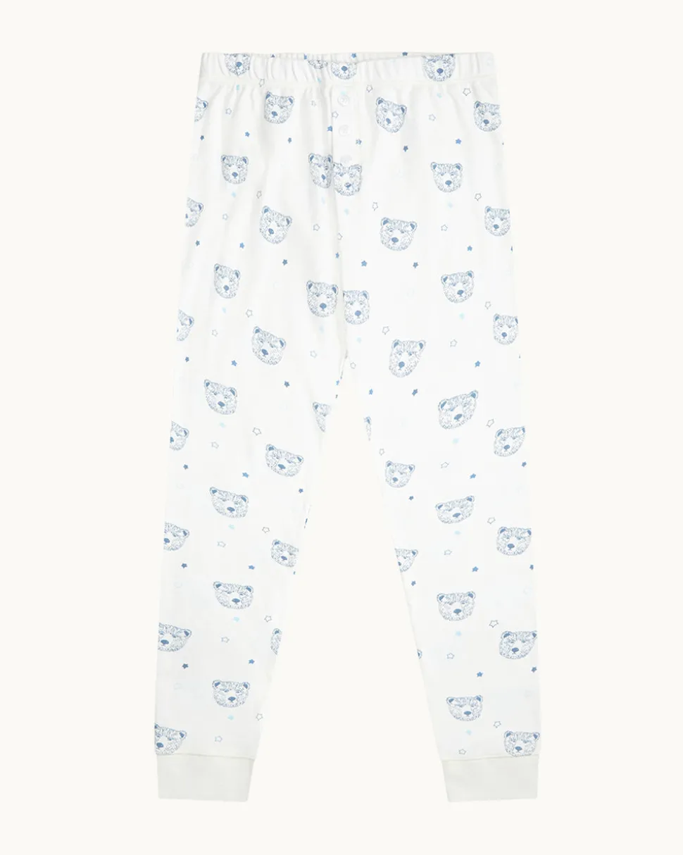 Princess Marie-Chantal of Greece’s eponymous label is known internationally for its unmatched style and the quality of materials—like their organic, hand-picked Pima cotton—which lies at the heart of their baby essentials and contemporary children’s clothing. Made from the softest organic cotton, the Bear Print Pyjama in Blue for child features the sweet bear face print and is available as part of the Family Matching Collection. Designed to keep your little one cozy.