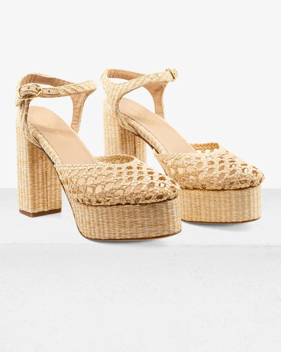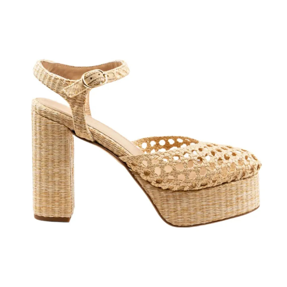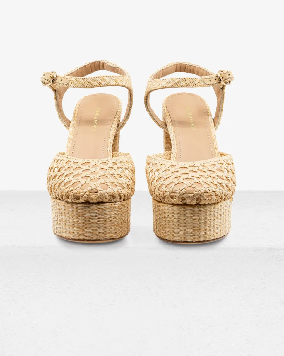 Launched in 2017, Andrea Gomez is driven by a two-fold mission of creating refined, timeless footwear and providing essential resources to Venezuelan children in need. Drawing inspiration from the undeniable beauty of Venezuela, the Andrea Gomez collection is inspired by, thoughtfully designed by and created for women. Handmade from woven raffia, the closed-toe Beatriz Natural Raffia Platform features a walkable block heel and a buckled ankle strap for secure footing.