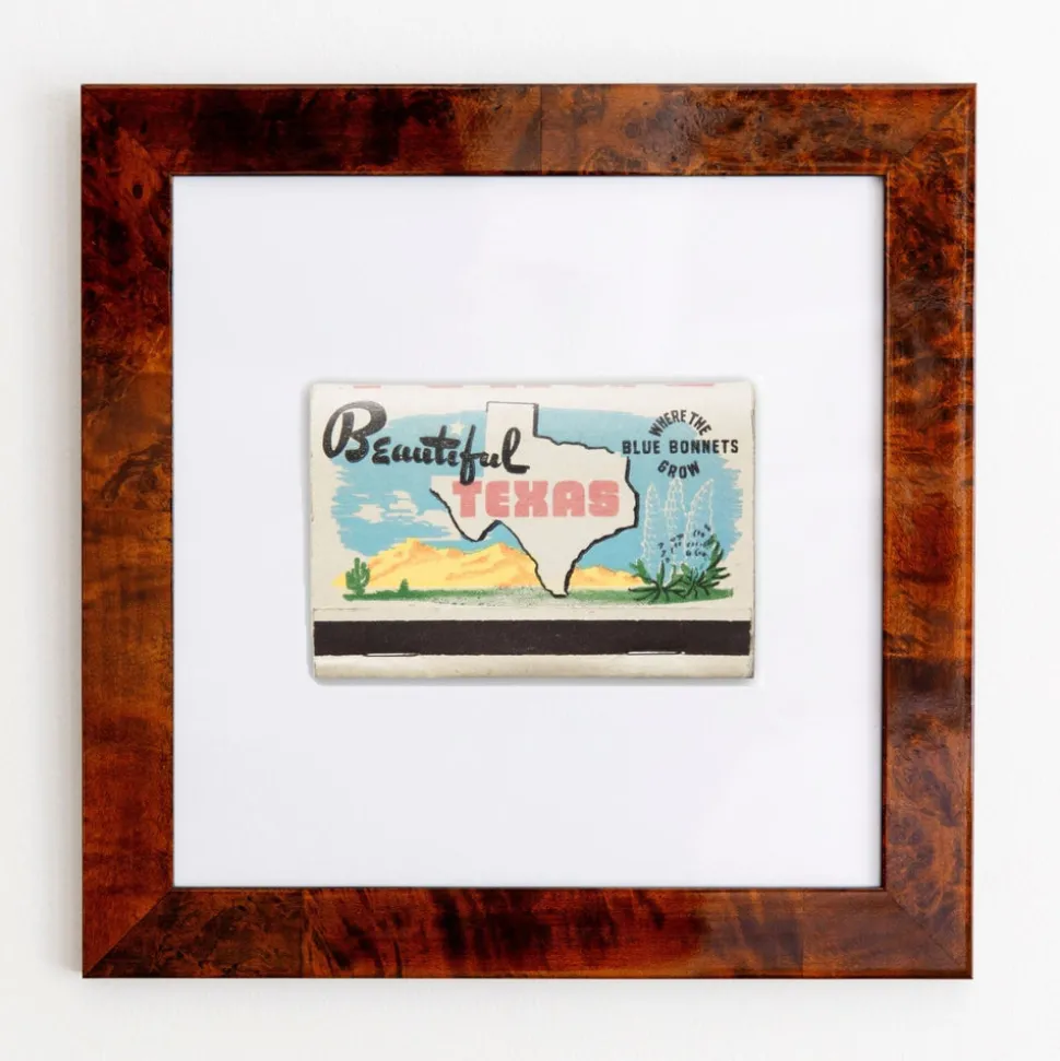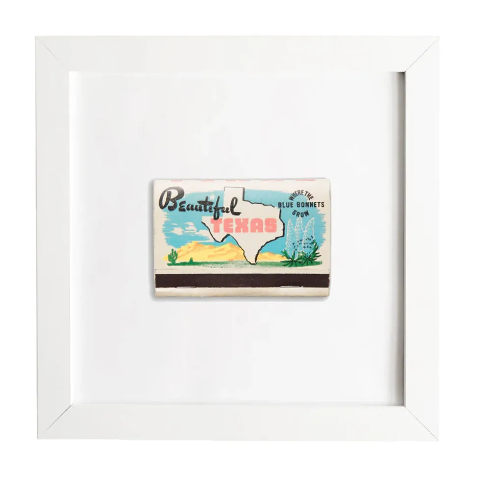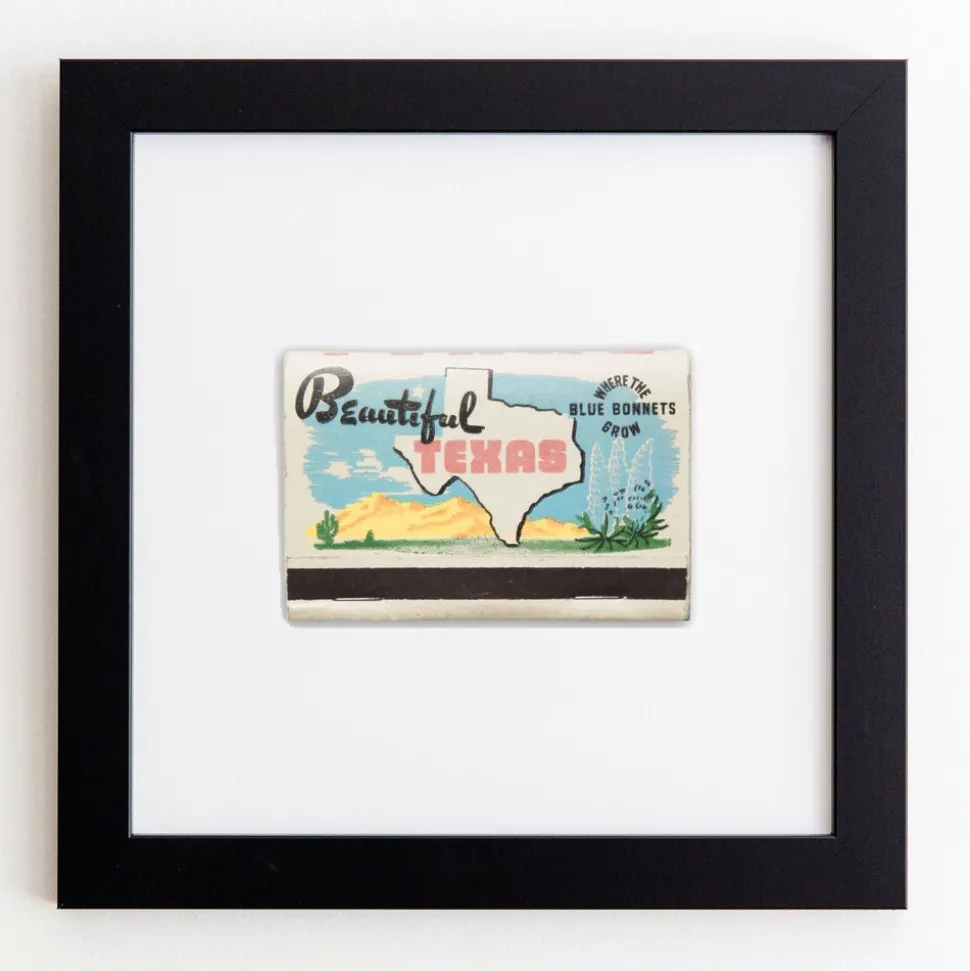 Handcrafted in the heart of Atlanta, Match South frames vintage matchbook images of professional sports teams, golf courses, restaurants, and hometown favorites. Founded in 2015, the brand was created as a passion project to kindle love and support the restaurant industry— designing high-quality photographs of matchbooks from every corner of the country. Where everything is bigger (and better), the Beautiful Texas frame makes for an effortless styling piece. Available in three colors, these frames have a white flat profile with clear acrylic for safe shipping.
