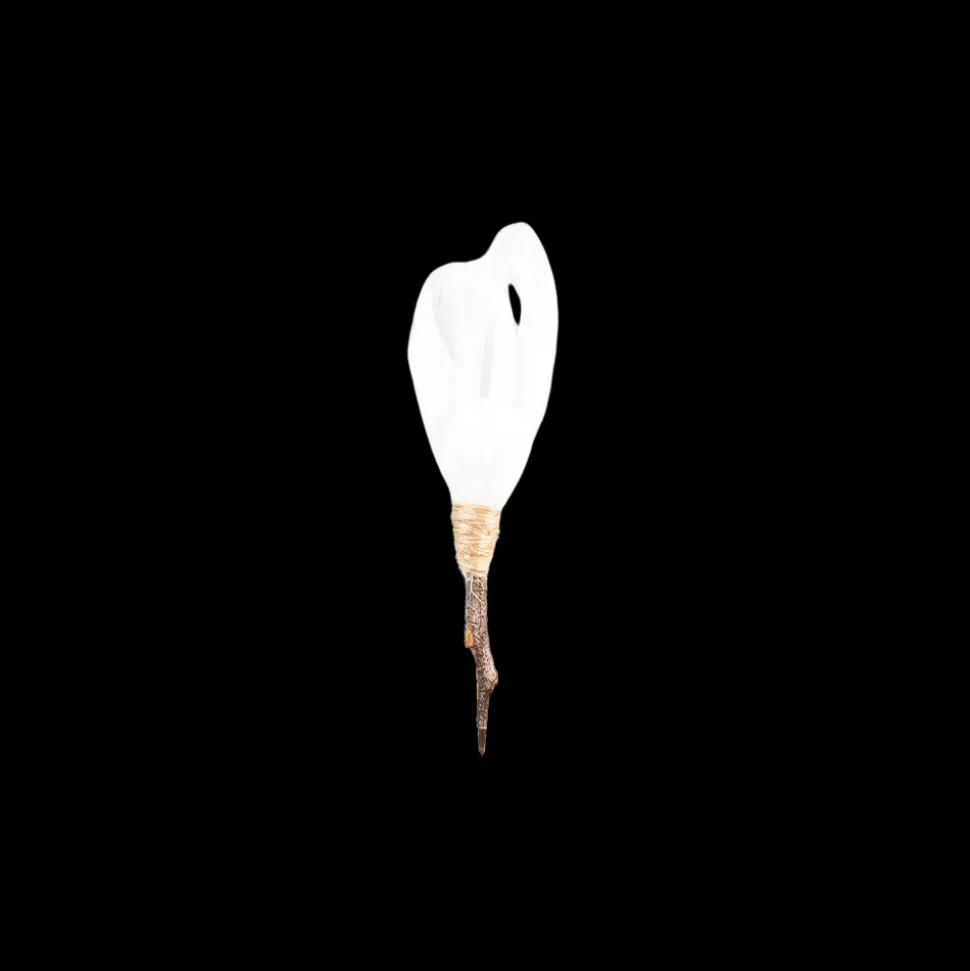 Brackish began with one feather bow tie designed by Ben Ross and gifted to his groomsman, Jeff Plotner. Since its inception, the brand has blossomed into a full line of men’s and women’s accessories designed and handcrafted in Charleston, South Carolina with each piece focused on honoring the beauty found in nature. The Beckham Pin is made with thorns from wild plum thickets are foraged, dried, and paired with hand selected feathers by our team of artisans to create a one of a kind statement. Each Plum Thicket Pin is designed to naturally complement the unique line of bow ties, or stand out on its own. They can be worn as a lapel pin, brooch, or hat pin. Ideal complement to the Carew, Edisto, Northwind, Whitehall and Rope Bow Ties. Made with white goose feathers.