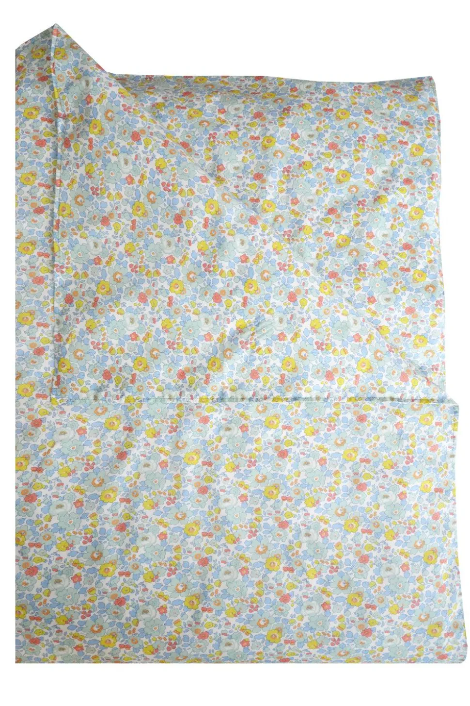 100% Liberty Tana Lawn® Cotton. Thread count 240. Envelope opening. Finished by hand with fabric-covered buttons. Edge top stitching in complementary thread color. Duvet Covers in sizes larger than a single feature 2 panels down the sides.