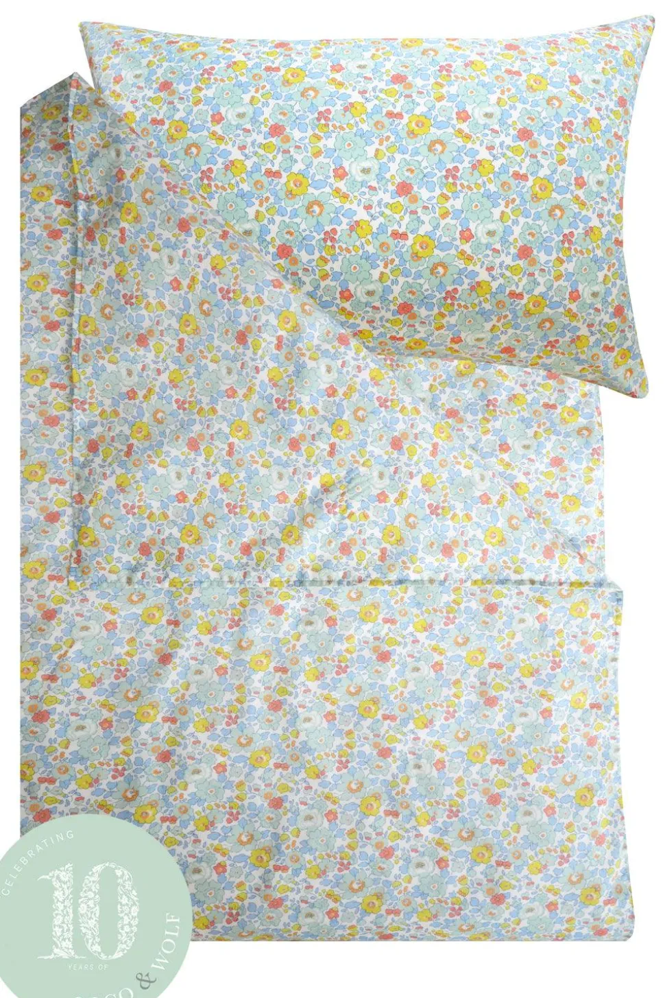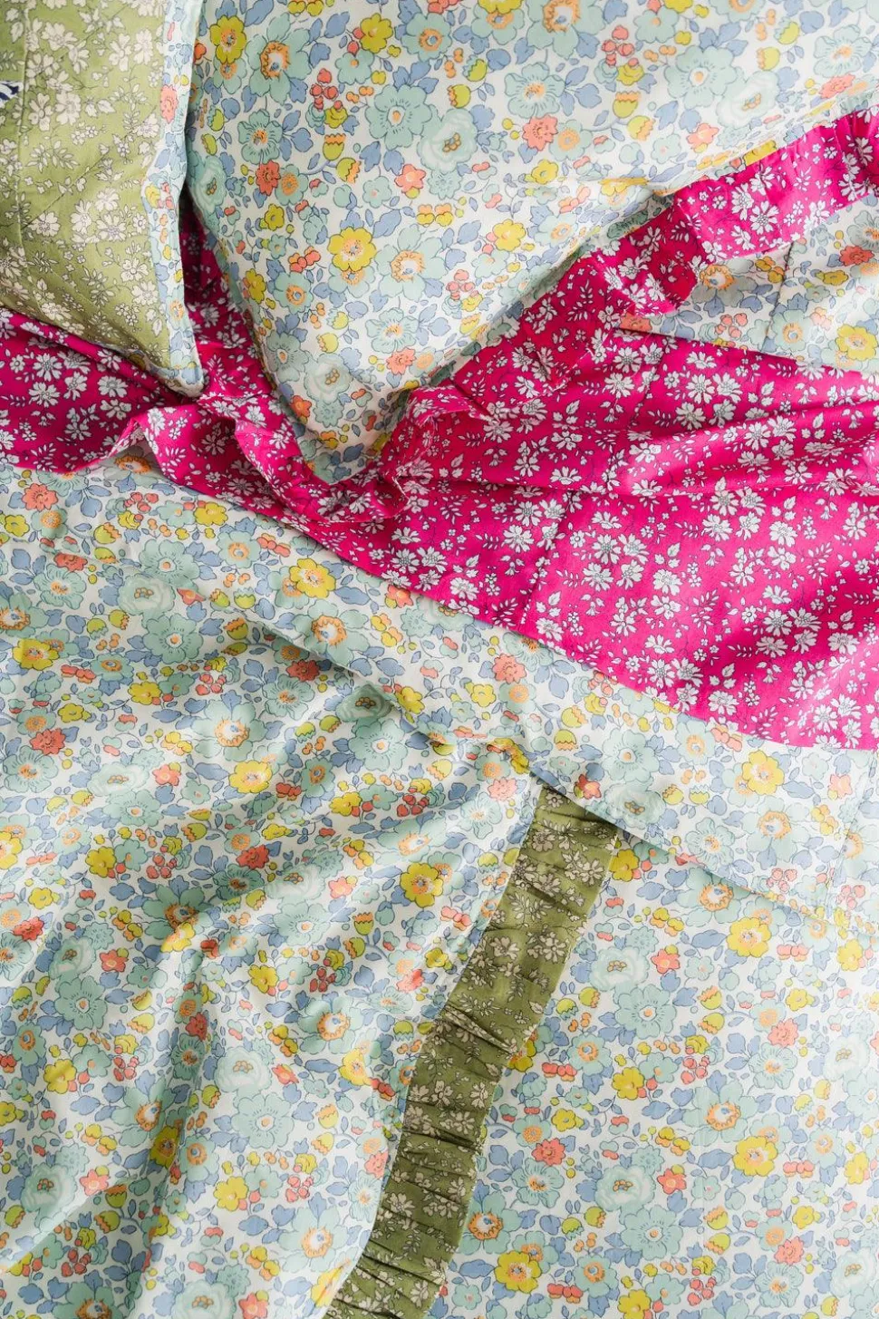 Coco & Wolf is a luxury bedding and lifestyle brand using premium Liberty fabric. Handmade in a Somerset, this collection of clean and contemporary homeware and table linens create stylish heirlooms for years to come. The signature, show-stopping Bedding Made With Liberty Fabric in Betsy Sage is handcrafted in Liberty’s inimitable Tana Lawn™ cotton, a modern masterpiece of fabric production that Liberty has been perfecting for over 100 years. With exquisite, heirloom quality and meticulous attention to detail, this bedding features stunning prints and joyful energy to dream-inducing bedrooms. Create an elevated and layered look by mixing prints across your bedding.