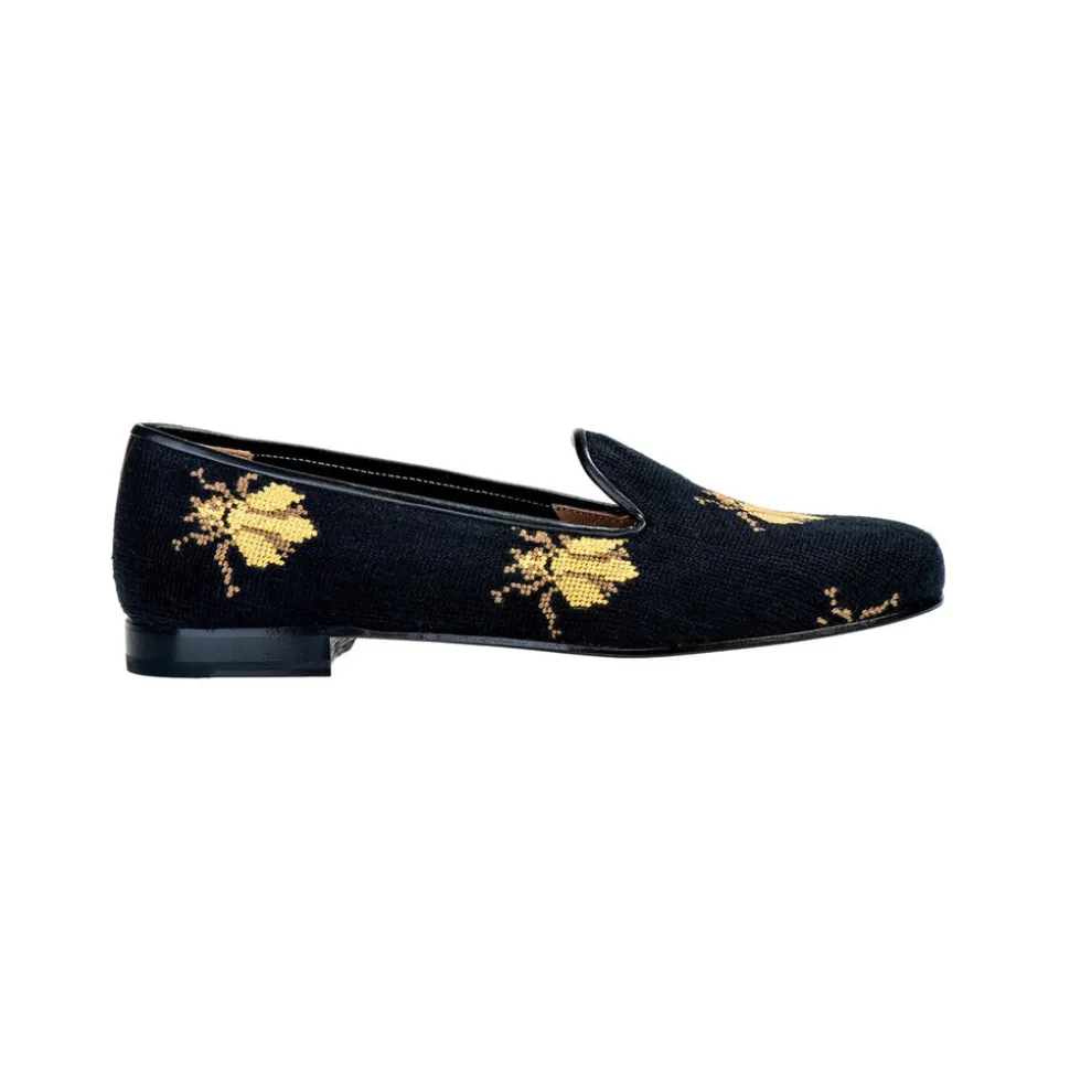 Founded in Palm Beach, Florida, Stubbs & Wootton has perfected the art of creating elevated, handmade women’s, men’s, and children’s shoes. Known for their exquisite needlepoint and embroidery, their slippers feature all-over patterns and fun, intricate accents. The Bee Black Needlepoint Slipper is handmade in Spain and features a bold bumble bee design. Lined with leather with leather soles, the stacked wooden heel is .75″ for a subtle lift.