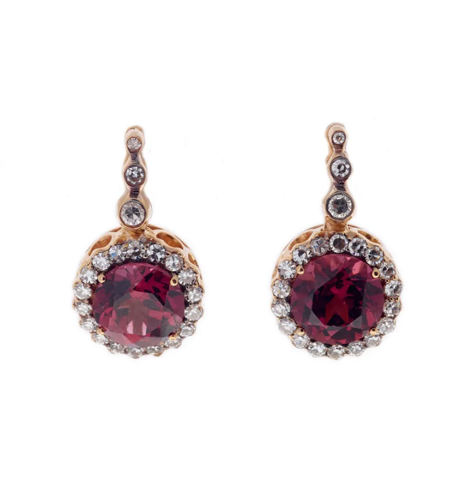 18K pink gold. Precious stone diamonds: 0.58 carats. Semi-precious rhodolites: 2.22 carats.