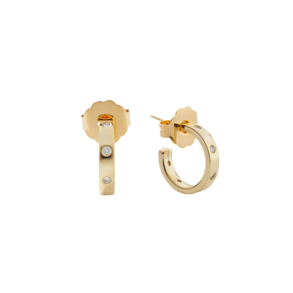 The mother-daughter duo behind Brinker + Eliza combine their experience in metalsmithing and fashion to create incredibly unique jewelry that feels custom-made. Employing pearls, shells, and earth’s most prized organic forms, these are pieces to be not just worn but treasured. Ideal hoop earrings, with a little something extra, the Bejeweled Hoops are 24 karat and gold plated, accented with shining crystals .