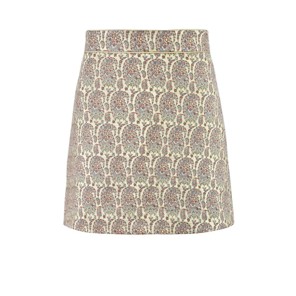 The brainchild of dynamic Iranian mother-daughter duo, Roshanak Varasteh and Leily Amirsardary Ahmed, RosewaterHouse is more than a fashion label; it is a testament to heritage, artisanal craftsmanship, and timeless design. The Bella Mini Skirt in Paisley is a breathtaking A-line silhouette cut from lamé Termeh fabric, traditionally woven by master artisans. A tribute to Safavid-era craftsmanship, this richly textured skirt captures the enduring beauty of Persian textile art. Finished with an organza lining, the Bella Skirt is a timeless wardrobe piece—elegant when paired with one of the brand’s signature blouses, such as the Boteh.