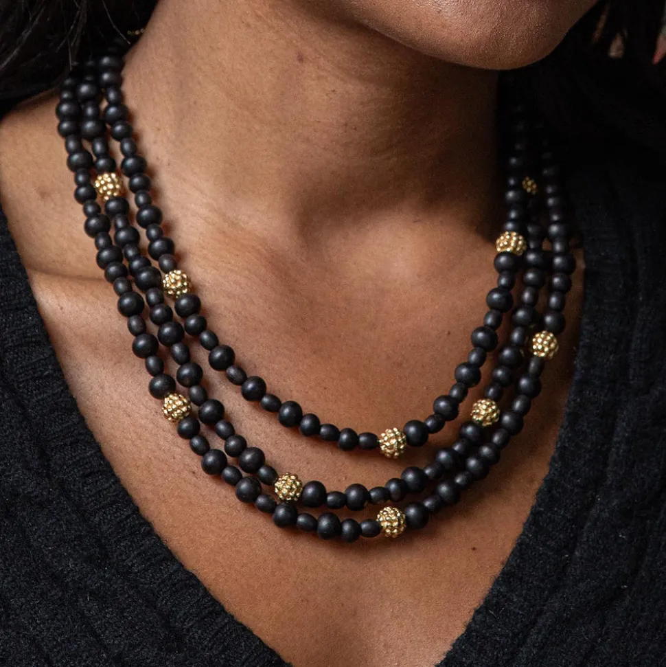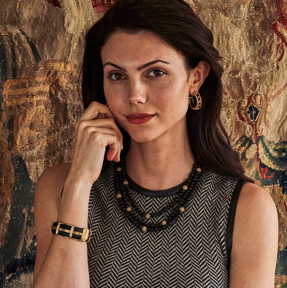 Half-Parisian, half-Texan, Capucine De Wulf’s unique upbringing was the inspiration for her namesake jewelry line. Her accessories combine French romance with an American sensibility. Inspired by the quiet beauty of nature, three strands of gorgeous ebony beads are accented with golden berries in a masterclass of uncontrived elegance.