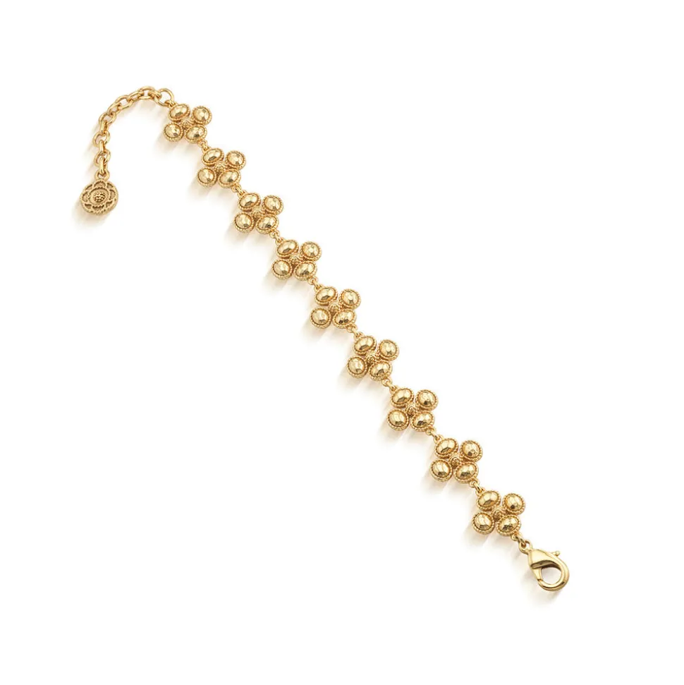 Half-Parisian, half-Texan, Capucine De Wulf’s unique upbringing was the inspiration for her namesake jewelry line. Her accessories combine French romance with an American sensibility. The Berry Clover Linear Bracelet in Gold links gleaming golden clovers in a graceful row, capturing the charm of a field of lucky blooms. Elegant on its own or layered in a bracelet stack, it adds a glint of refined serendipity to any look.