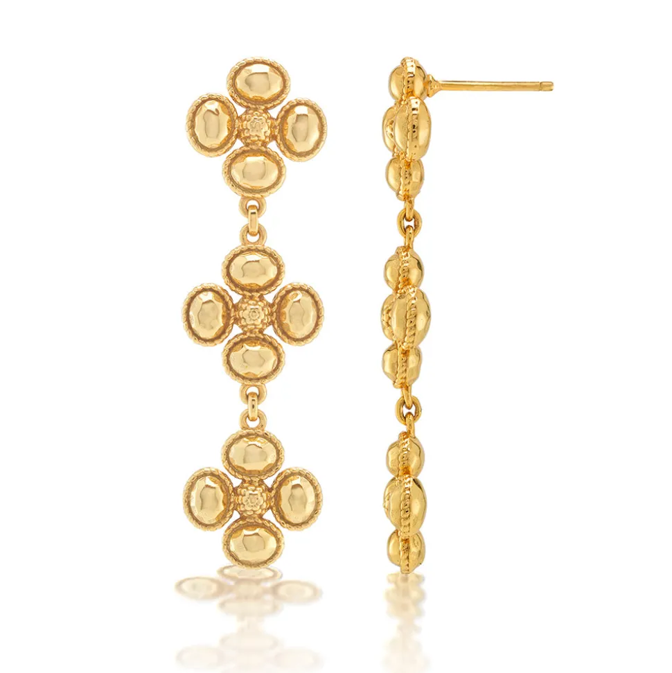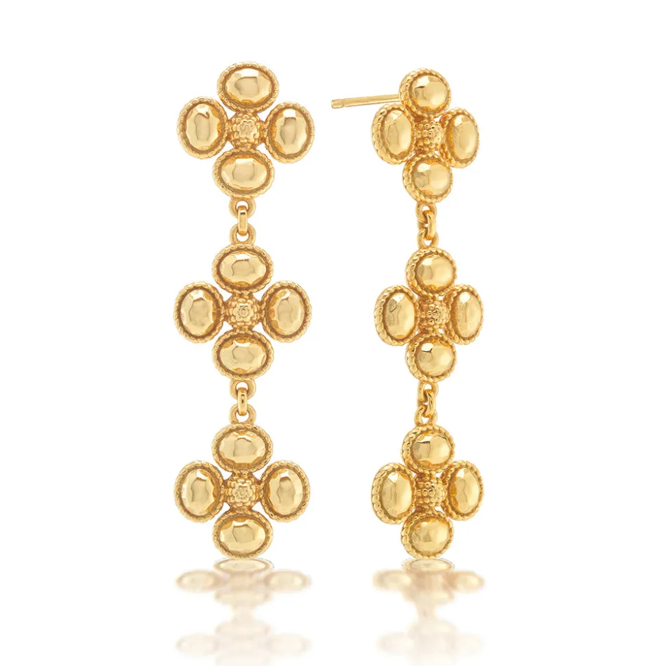 Half-Parisian, half-Texan, Capucine De Wulf’s unique upbringing was the inspiration for her namesake jewelry line. Her accessories combine French romance with an American sensibility. The Berry Clover Linear Earrings in Gold feature a trio of clovers, each with a gilded berry center, cascading in a refined linear silhouette. At once streamlined and romantic, they bring a touch of femininity and a little luck wherever life takes you.