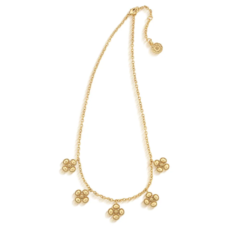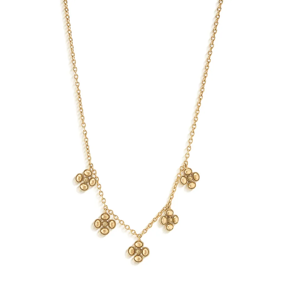 Half-Parisian, half-Texan, Capucine De Wulf’s unique upbringing was the inspiration for her namesake jewelry line. Her accessories combine French romance with an American sensibility. The Berry Clover Multi Station Necklace in Gold features dainty golden clovers, each finely detailed and spaced along a delicate chain. At once subtle and striking, it serves as a timeless token of luck and elegance—made to accompany you wherever life leads.
