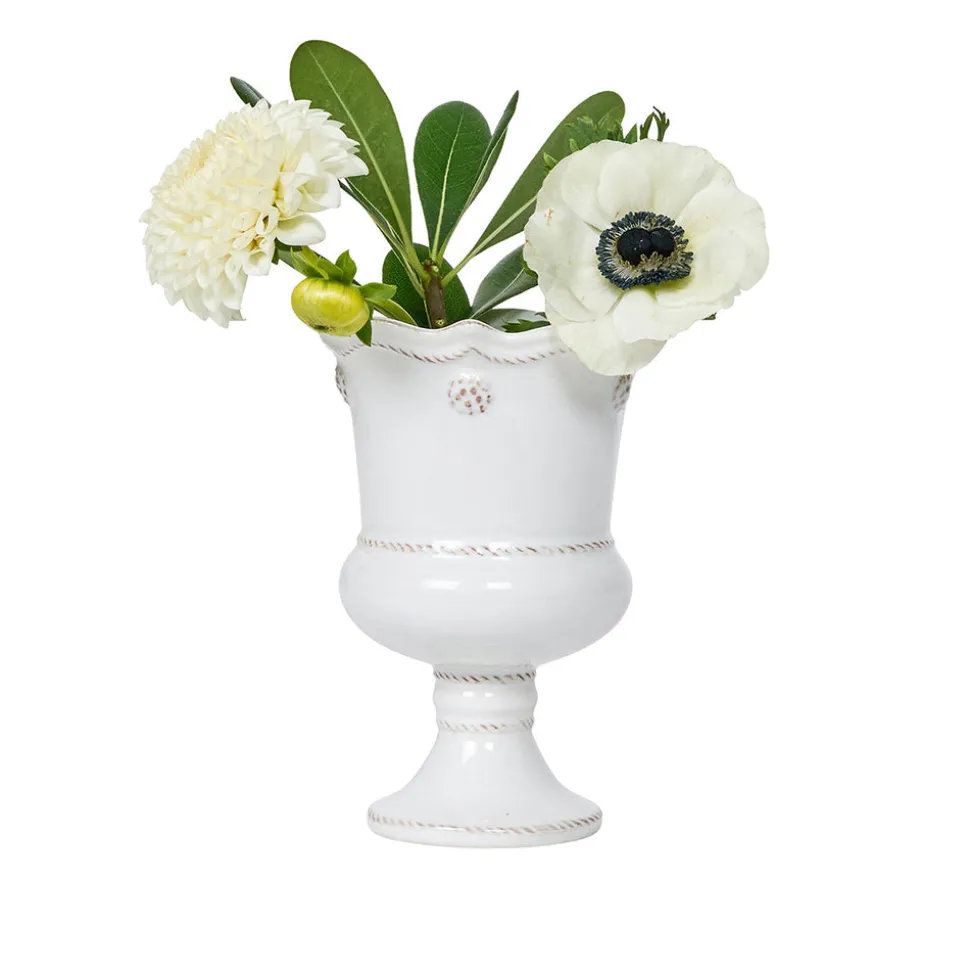 As newlyweds and self-proclaimed romantics, Capucine and David Gooding founded Juliska in 2001 with a small collection of mouth-blown Bohemian glasses. Today, it’s the tableware and home brand every good hostess needs to know. Trimmed with the iconic motif and gleaming with a signature whitewash glaze, the Berry & Thread Petite Parterre Garden 5″ Vase in Whitewash is your go-to, versatile vessel for everything from wildflowers on your desk to garden roses for brunch. Use alone or in combination with our other parterre sculptural pieces to create your own fantasy tabletop garden.