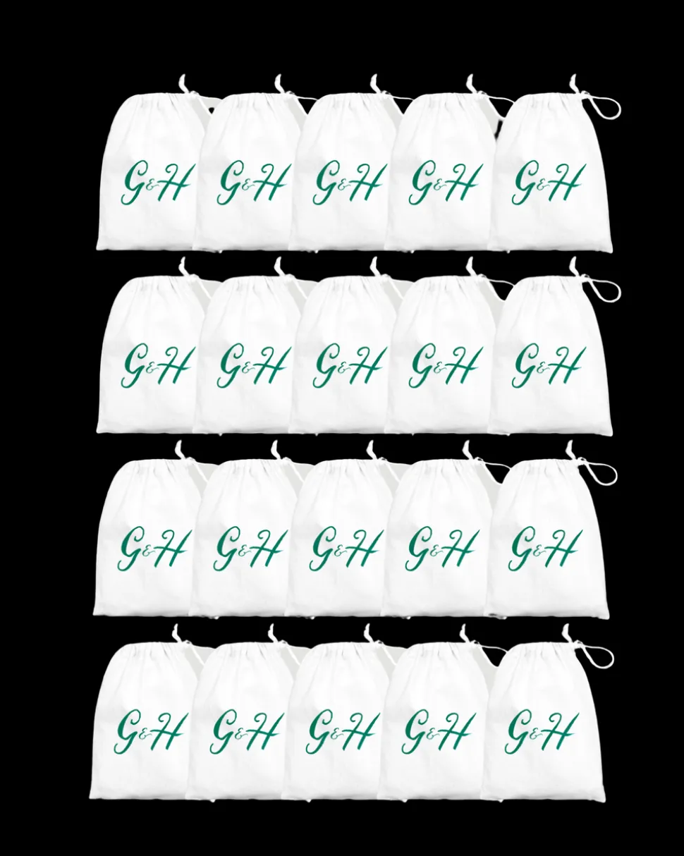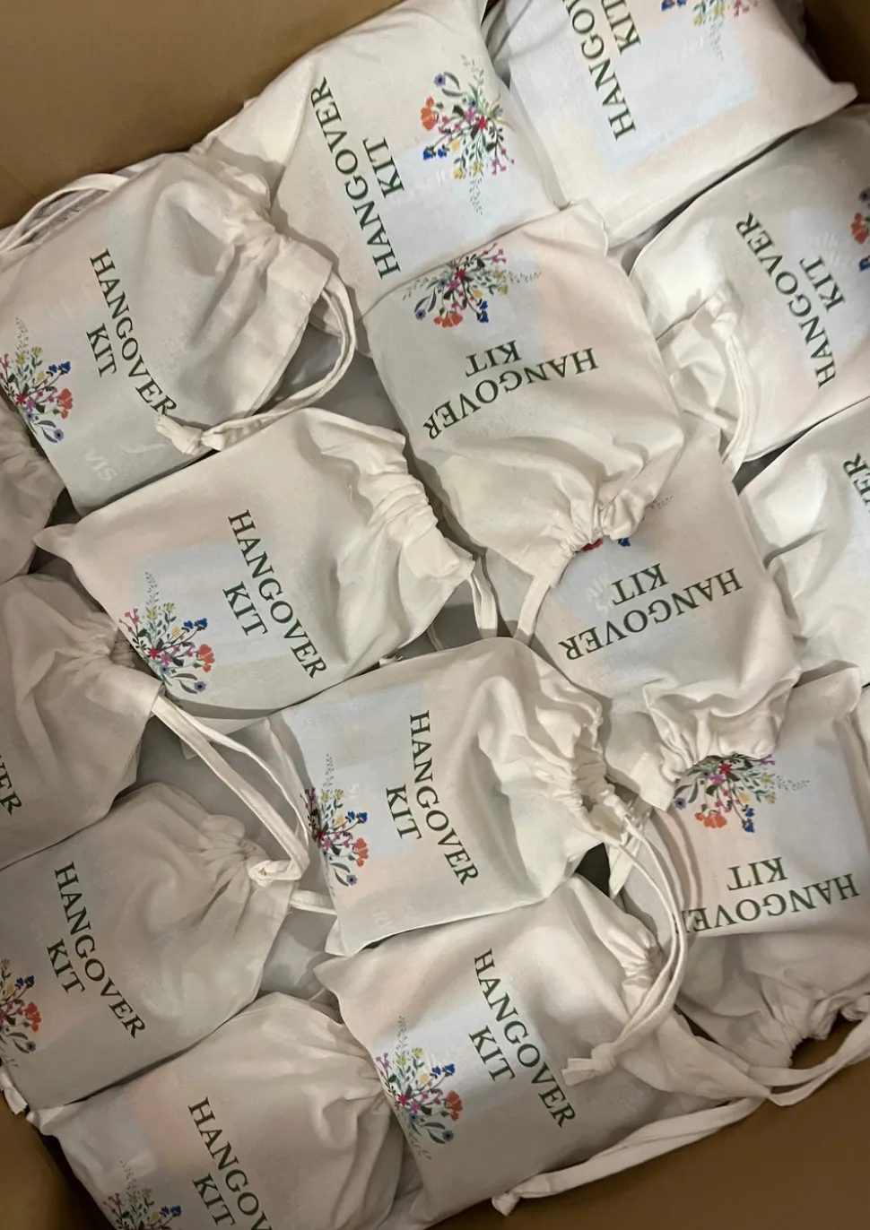 Built on the bonds of sisterhood, Gigi & Olive offers thoughtfully curated collections for brides-to-be from Georgie Le Roux and her sister Olivia. Offering everything from personalized hats to table linens, with a gorgeous embroidery service, the brand’s veils, hair bows, scrunchies, handkerchiefs and garters are at original, fashionable, and aspirational. These DIY pouches will be welcome gifts for any guests who may have a slightly sore head the day after your event or wedding. Upload your custom artwork with a wedding crest or date and name, and get as creative as you like!