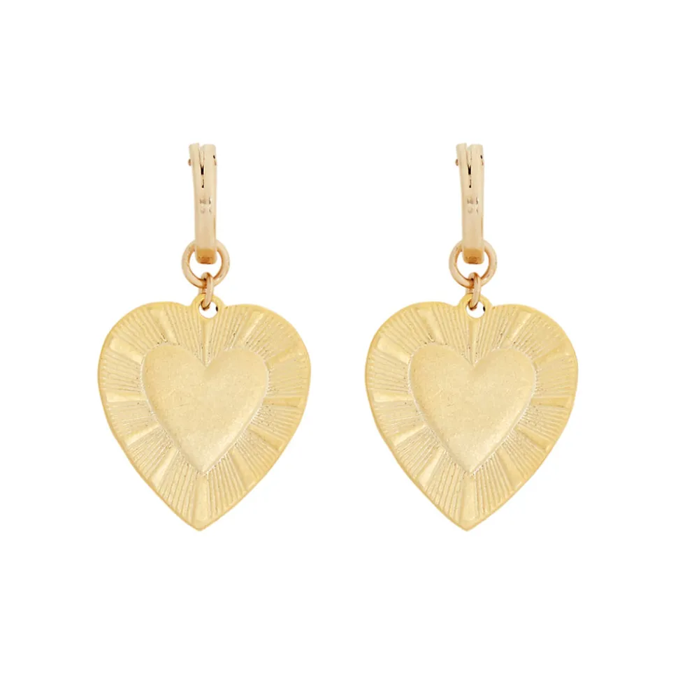 The mother-daughter duo behind Brinker + Eliza combine their experience in metalsmithing and fashion to create incredibly unique jewelry that feels custom-made. Employing pearls, shells, and earth’s most prized organic forms, these are pieces to be not just worn but treasured. Like its twin necklace, the Best Is Yet To Come Huggies are hopeful with their 24-karat, antique, golden heart charms, hanging from gold bands.