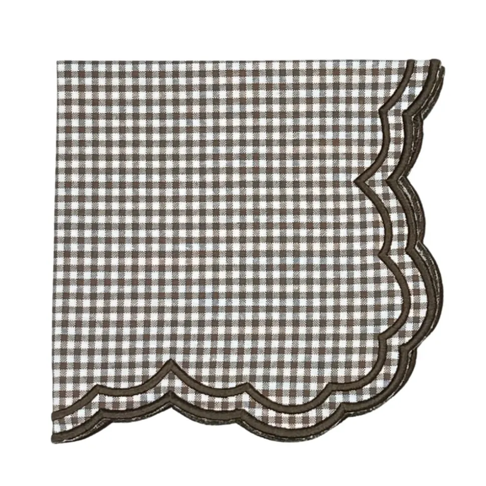 Swiss linen, fine cotton and tasteful refinement define Flying Sheep Country’s linens and tabletop items. Founded by two sisters who spent their youth spotting sheep in the English countryside, the brand celebrates both luxury and whimsy in its vibrant prints, fine embroidery and traditional artisanship. Articulated with a scalloped rim and carefully covered in an elevated gingham print, the Bettina Napkin in Cocoa Gingham, Set of 4 adds both warmth and sophistication to your dining table.