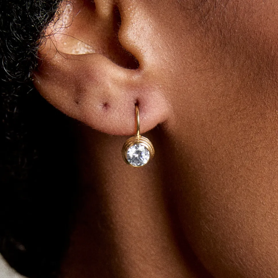 When you think HART, think of joyful jewelry. Created by Charlestonian Hart Hagerty in 2016, each piece of HART is a talisman to positivity, creating a soul-boosting experience for the modern, mindful woman. The Bezel Drop Earrings offer drops of easy elegance that sparkle with 5A CZ stones. Comfortable and versatile, these leverback earrings are designed for everyday wear—effortlessly elevating a t-shirt and jeans or shining on their own as the finishing touch to an evening look.