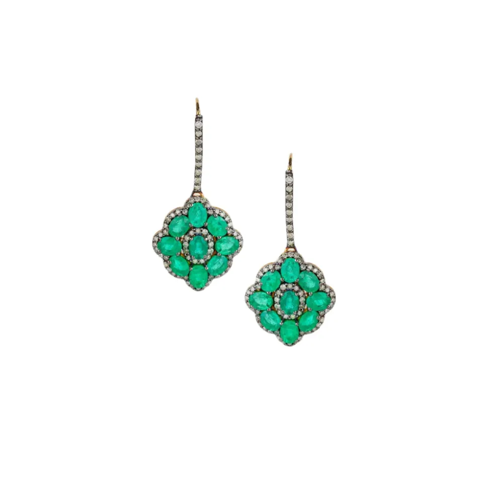 Each piece of jewelry from Sanjay Kasliwal is handcrafted at its atelier in Jaipur by master artisans, many of whom have been with the company for generations. Made from the highest quality of materials and with ethically sourced stones that are hand-cut and polished directly in the workshop, this jewelry supports eight generations of passion and craft intended to be passed down for years to come. Deceptively simple, the emeralds of the Bindu Emerald and Diamond Earrings for a cluster around a central stone, separated by rings of diamonds.
